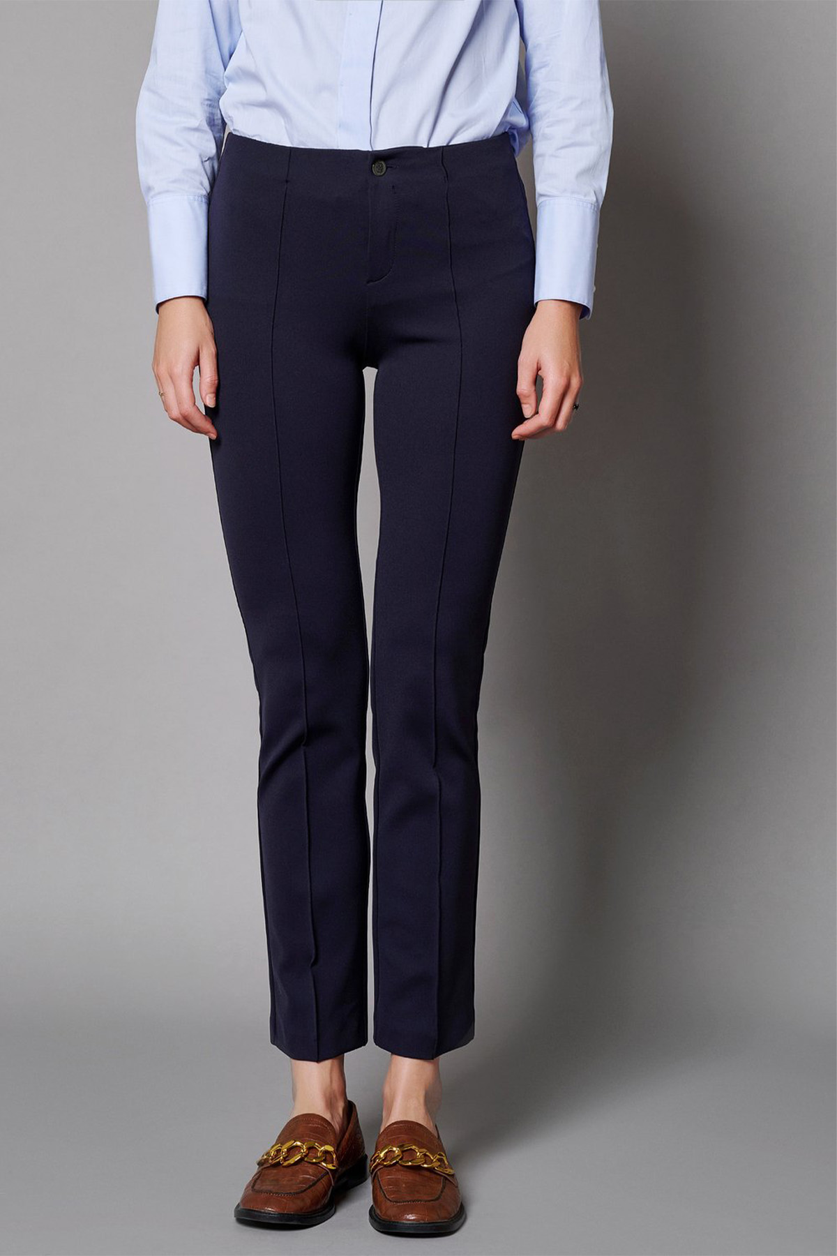 Alisa Slim är en elegant dressad byxa i bekväm stretchig kvalitet med normalhög midja och med linning i ett med byxan. Byxan är ankellång och har en figurnära passform med raka ben. Byxorna stängs med dragkedja och knapp fram.