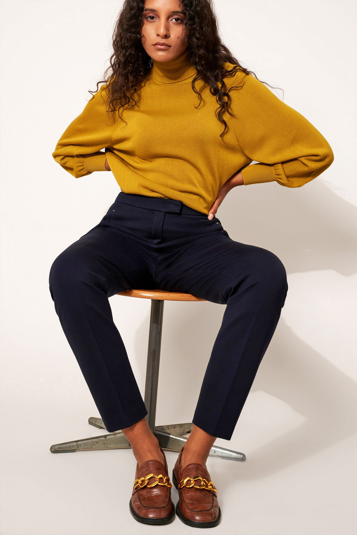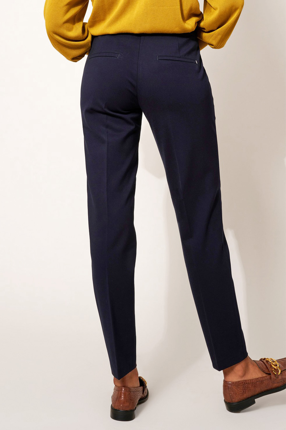 Alisa är en elegant dressad cigarettbyxa i bekväm jersey kvalitet med hög midja med följsam linning. Ledigare över låren och avsmalnat benslut. Infällda fickor fram med stolpfickor bak med detaljer på fickorna.