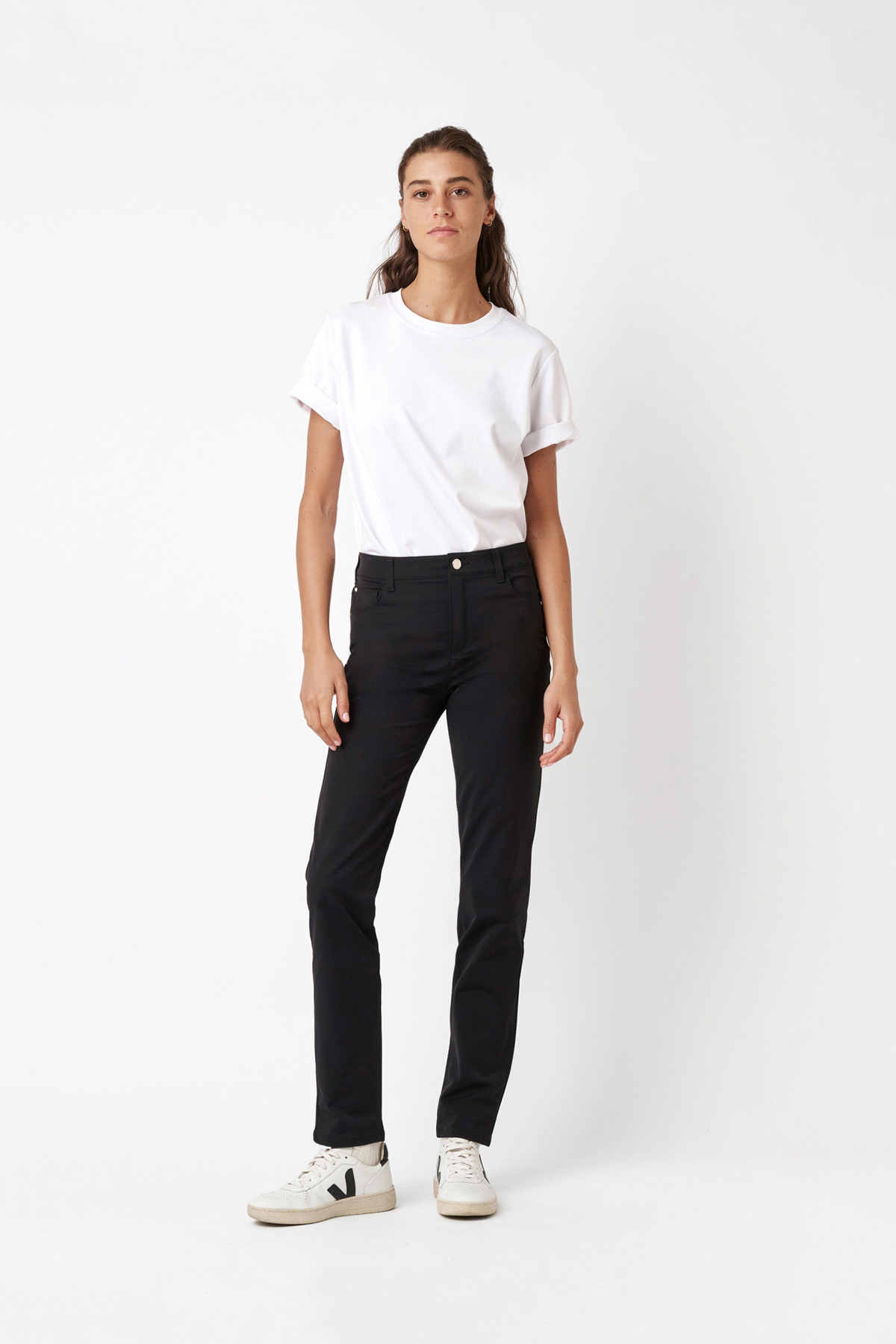 • Material: Tillverkad i ett svart bomullstechno-material som ger en mjuk och följsam känsla. Den höga andelen stretch säkerställer perfekt passform, komfort hela dagen och är samtidigt lättskött och formhållande.