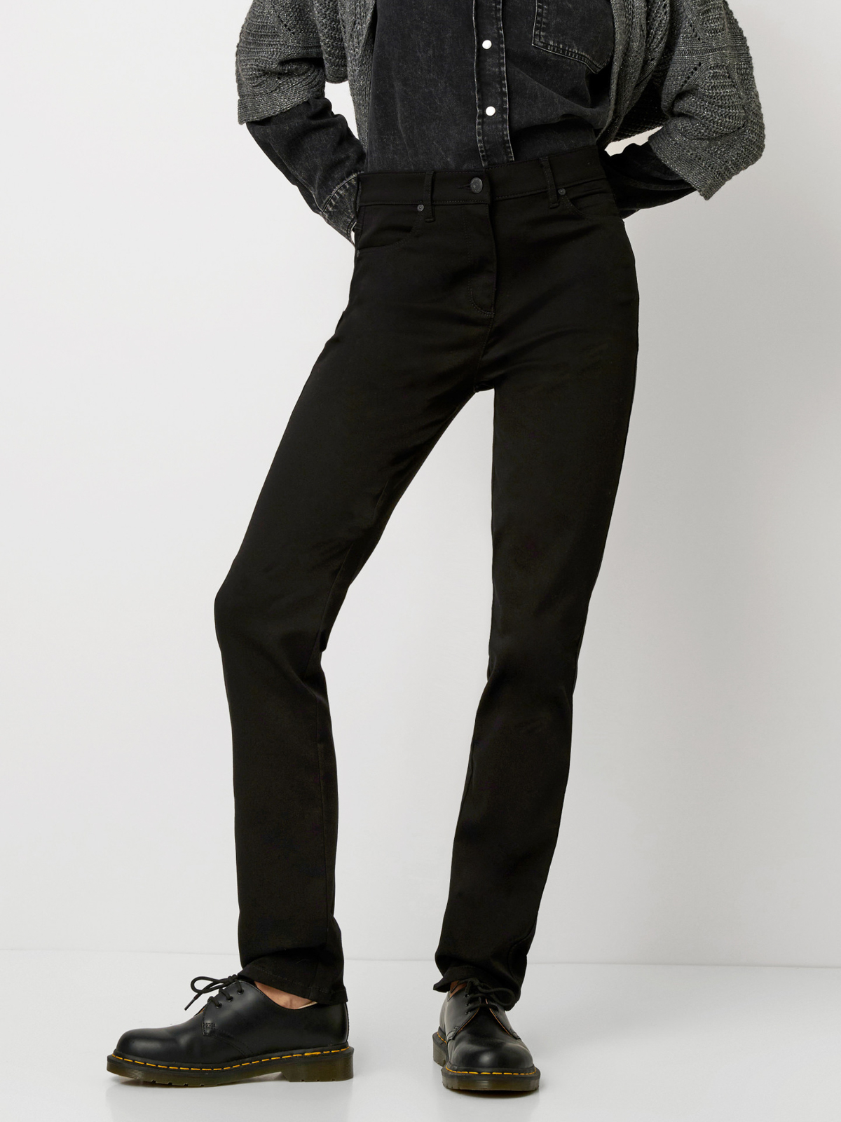 Be Loved CS Bomull Perfect Black från Toni är ett par klassiska och kvinnligt skurna byxor med riktigt hög midja och smalt stuprörsben – perfekt för dig som önskar lite mer utrymme i linningen, men har slanka ben och en nätt stuss.