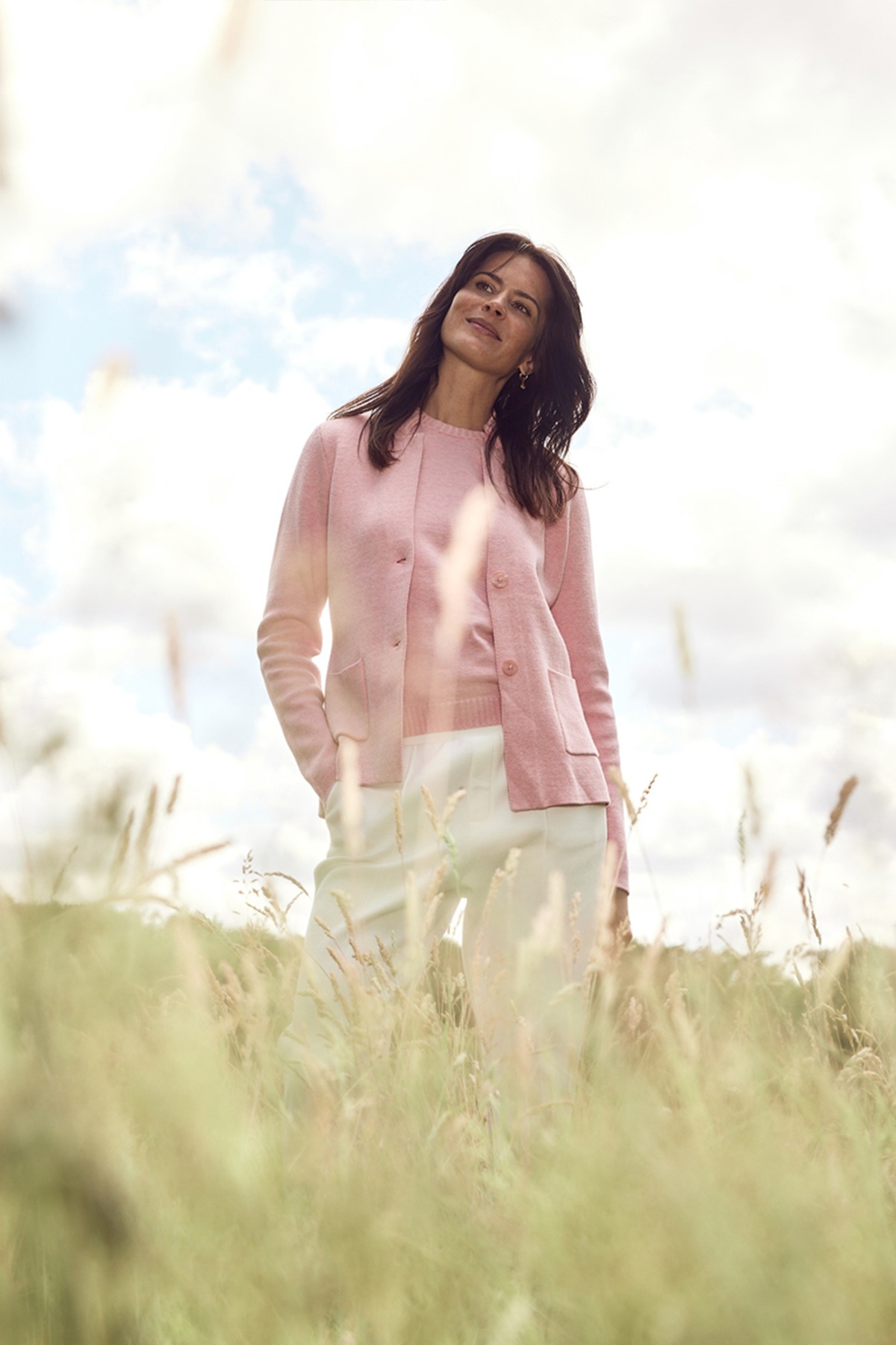 Blooming Kofta Eugenia, långärmad stadig stickad kavaj/kofta från Bloomings med ståkrage. Kavajen är något figursydd i modellen och normal i passformen.