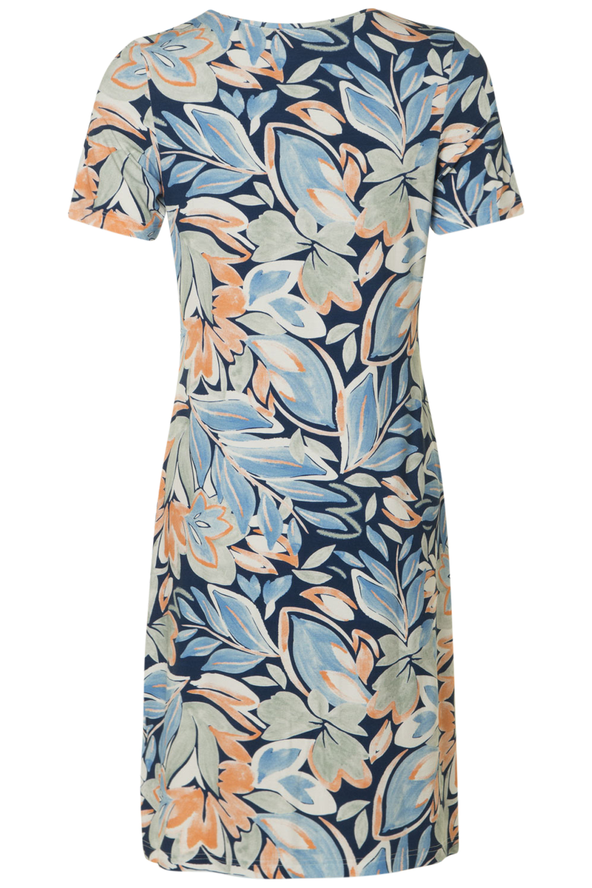 Clarina Klänning Ofelia är en mönstrad rundhalsad klänning från Clarina med kort ärm. Klänningen är något figursydd i skärningen och normal i passformen, tillverkad av en mjuk och stretchig viskosmix.