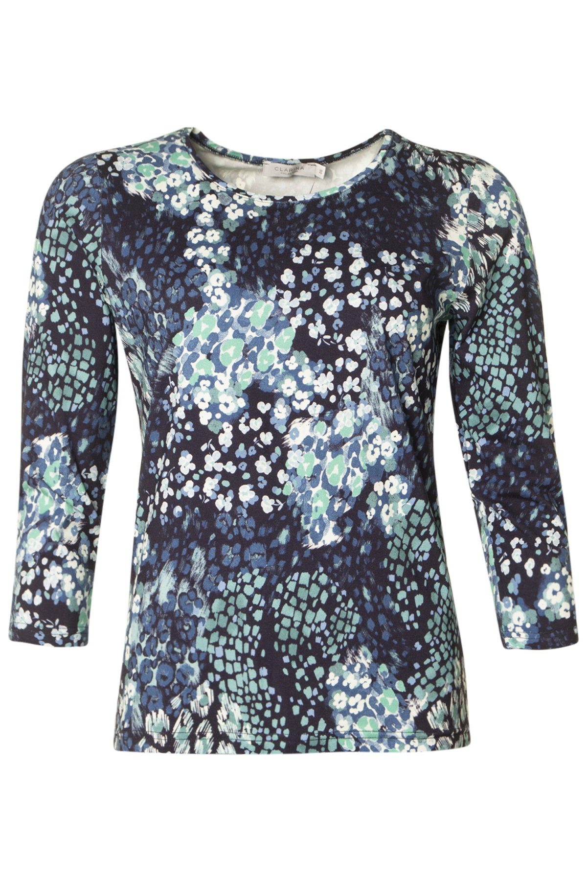 Clarina Topp Alina är en mjuk och behaglig topp med 3/4-ärm och rund halsringning. Modellen är lätt figursydd med normal passform och pryds av ett vackert tryckt mönster som ger en livfull detalj till outfiten. Tillverkad i sval och skön viskoskvalitet, vilket gör toppen perfekt för både vardag och mer uppklädda tillfällen. En mångsidig favorit som enkelt kombineras med både byxor och kjol.