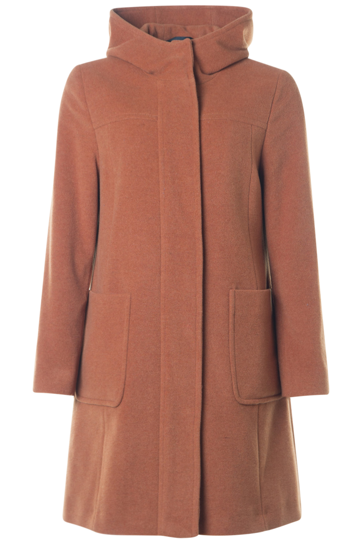 Halvlång kappa från Flare med härligt värmande kapuschong. Kappan är rak i modellen och har normal passform. Den knäpps med dragkedja och sju tryckknappar fram och har två utanpåfickor. Kappan är tillverkad av en mjuk och skön filtad ullkvalitet och är helfodrad och den passar perfekt under kyliga höstdagar.