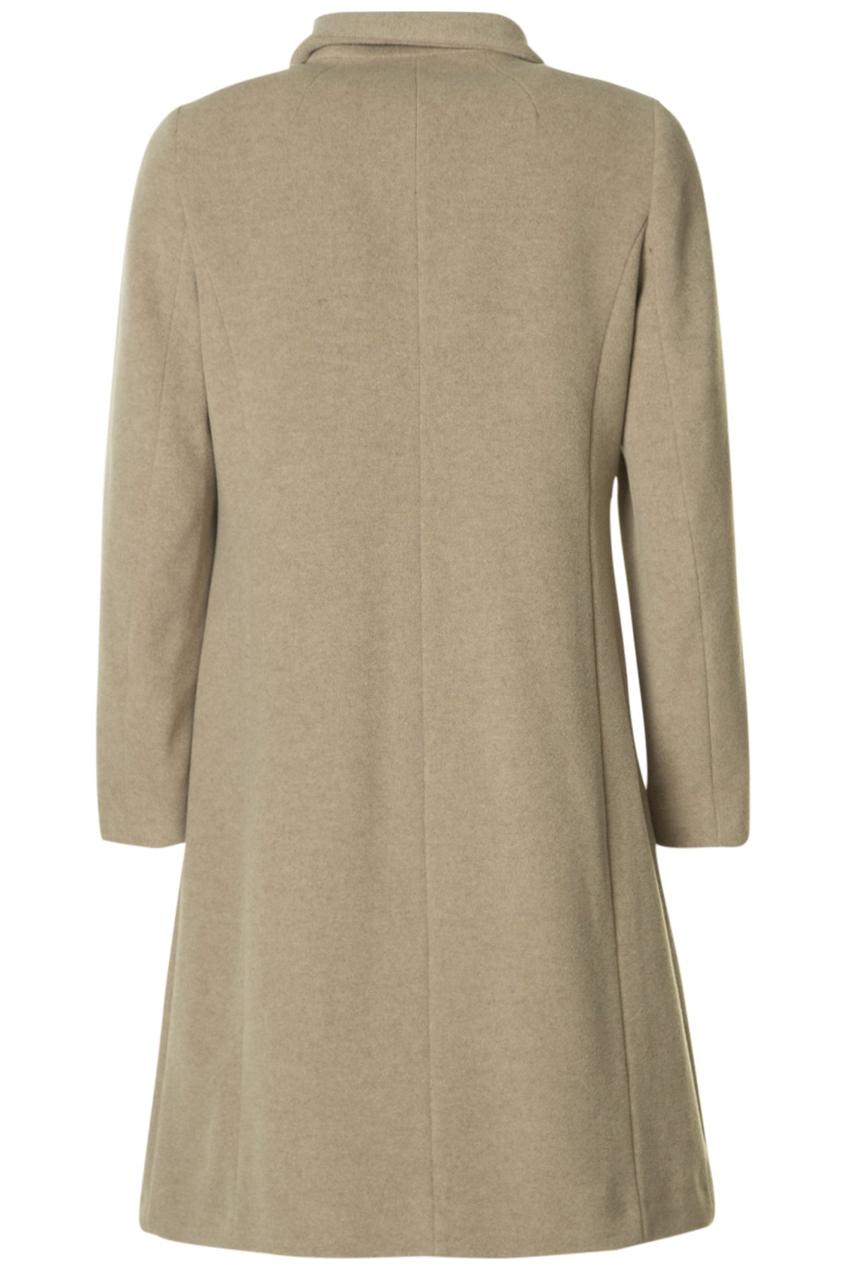 Halvlång kappa från Flare med ståkrage. Kappan är något figursydd i modellen och har normal passform. Den knäpps med fyra stora knappar fram och har två stolpfickor. Kappan är tillverkad av en mjuk och skön filtad ullkvalitet och är helfodrad och den passar perfekt under kyliga höstdagar.