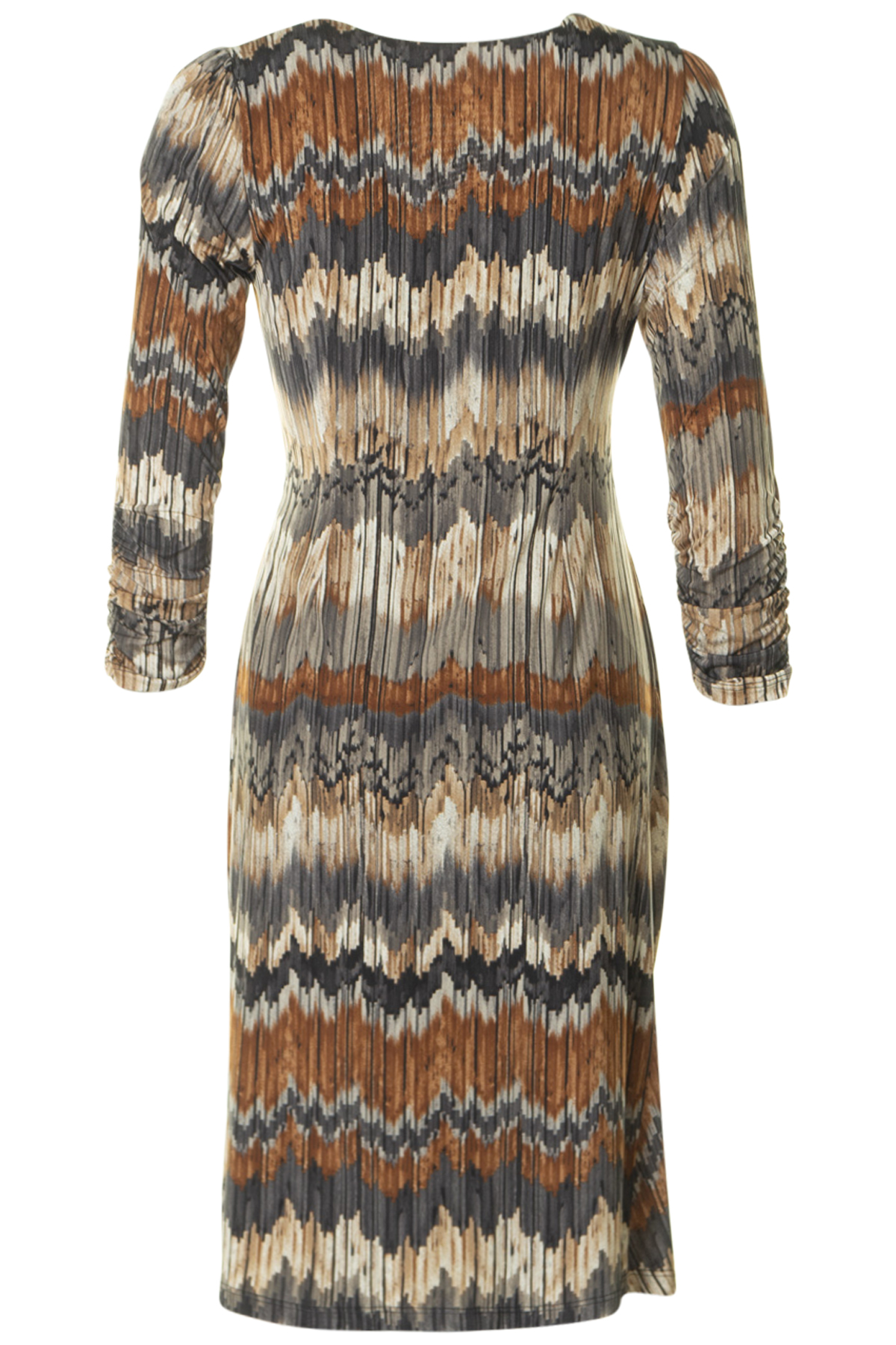 Klänning med lång ärm från In Front. Klänningen är sydd i omlott fram med en drapering och knytband för en smickrande passform.