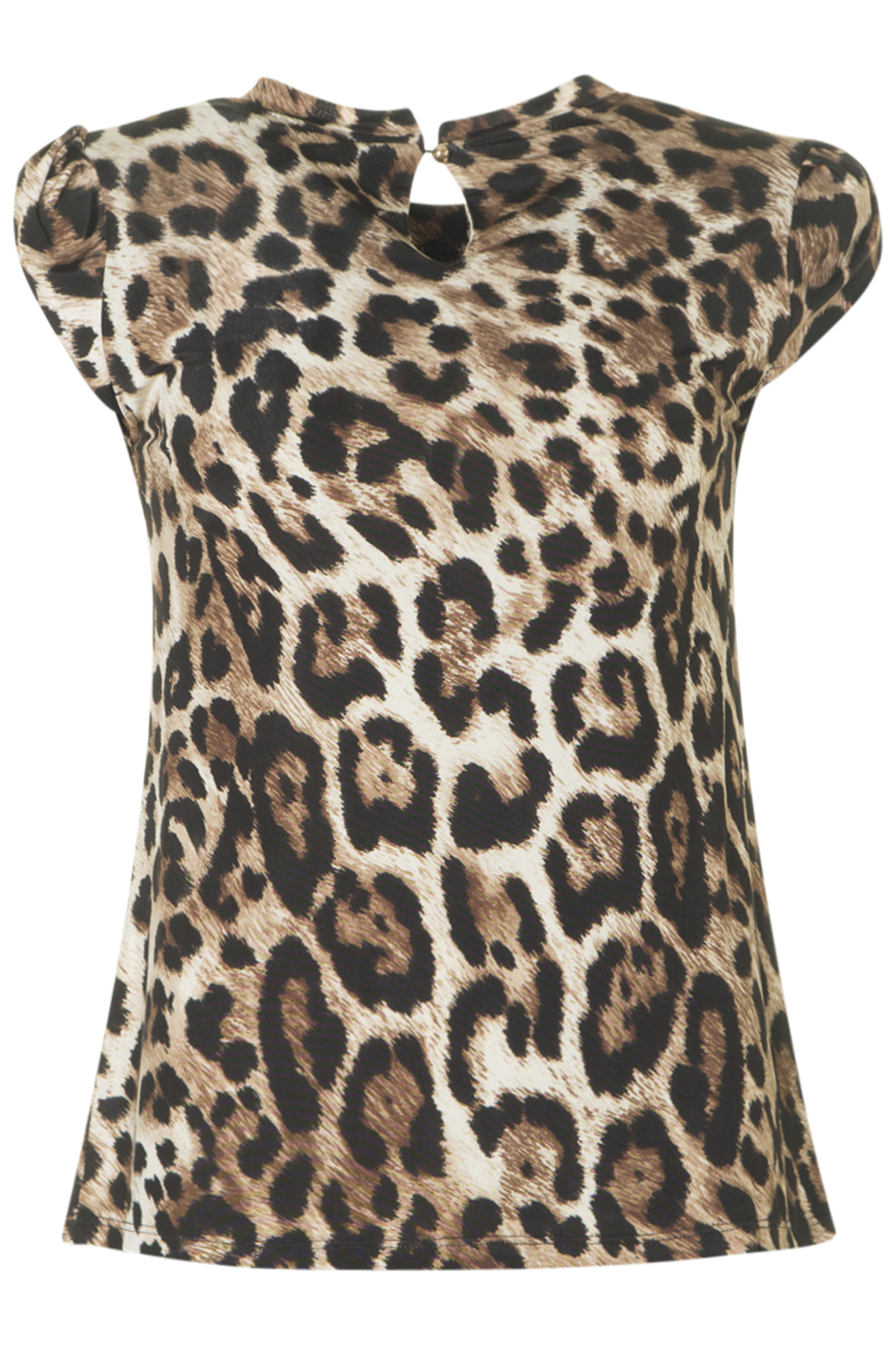 Blus från In Front med kort volangärm och en omlott på axel. Blusen är rak modellen och lös i passformen. Halsringningen har en dekorativ veckning, med volangkant och den knäpps bak i nacken.