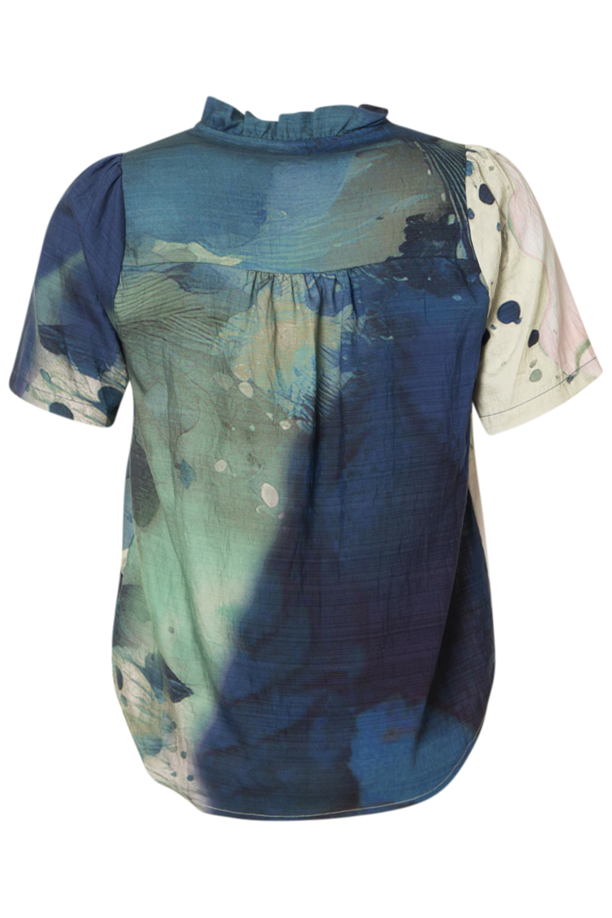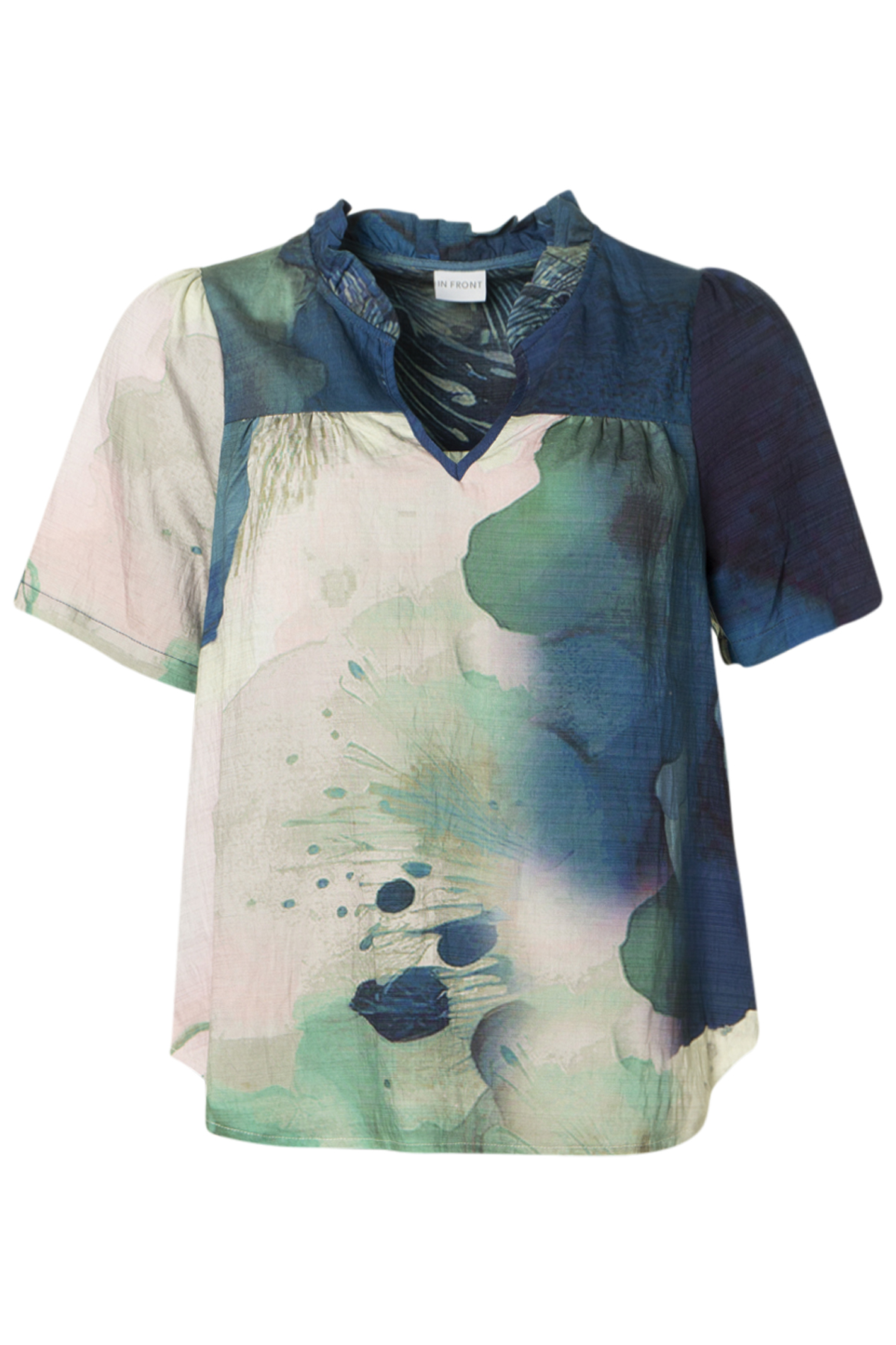 In Front Gubbi Blus Breeze, är en härlig sval blus med rund hals och en volang med V-sprund. Blusen har kort ärm är rak och rymlig i modellen. Den är tillverkad av en mjuk och sval viskosmix.