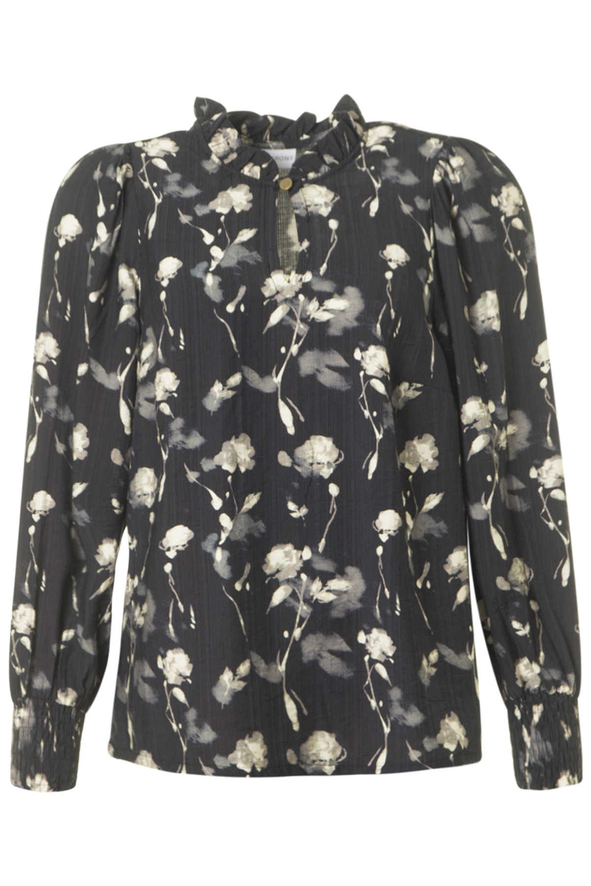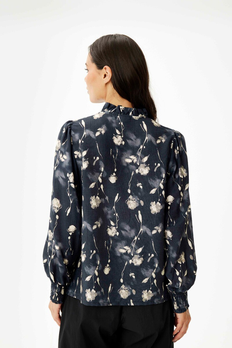 Blusen har ärm med smock-resår i manschetter och den är tillverkad av en mjuk kvalitet med vackert tryck.