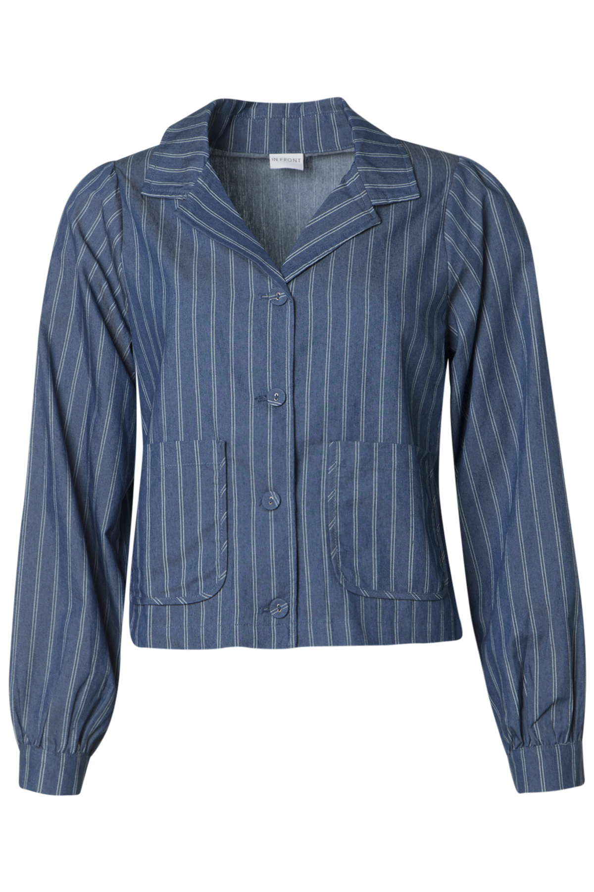 En ofodrad användbar inner-jacka i från In Front med lång ärm och rak modell. Jackan knäpps med fyra klädda knappar fram, och en knapp i manschetten. Den har klassiskt kavajslag och två utanpåfickor fram.