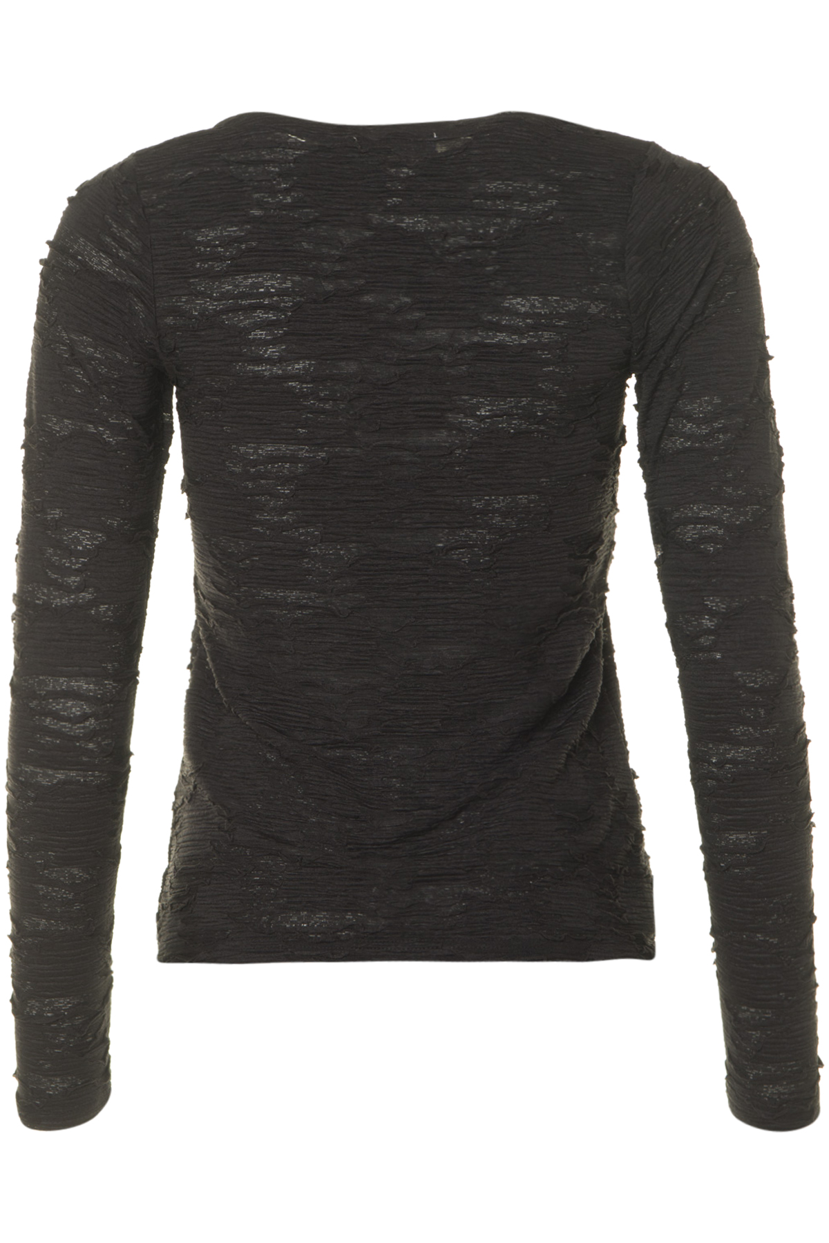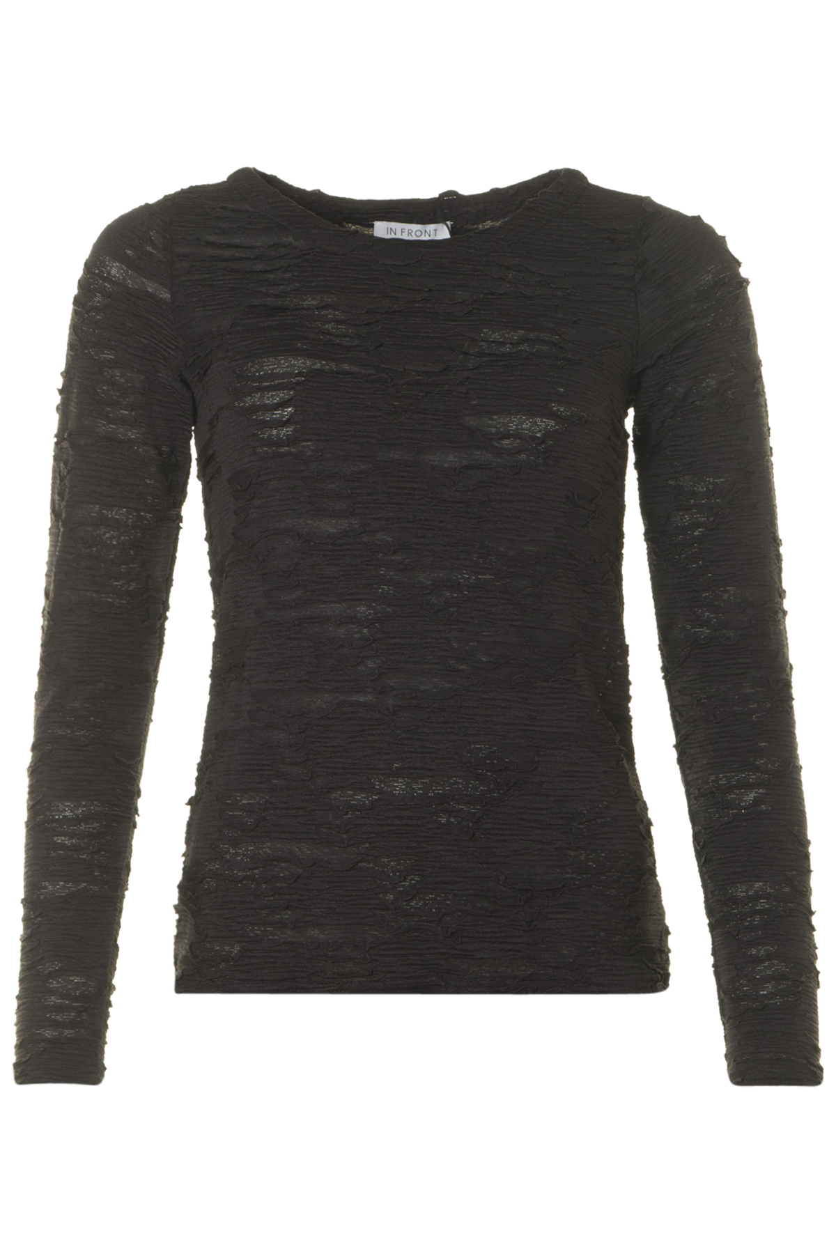 En fin rundhalsad topp från In Front med stuktur och genombrutna effekter. Toppen har långa ärmar och är rak i modellen och något figurnära i passformen.
