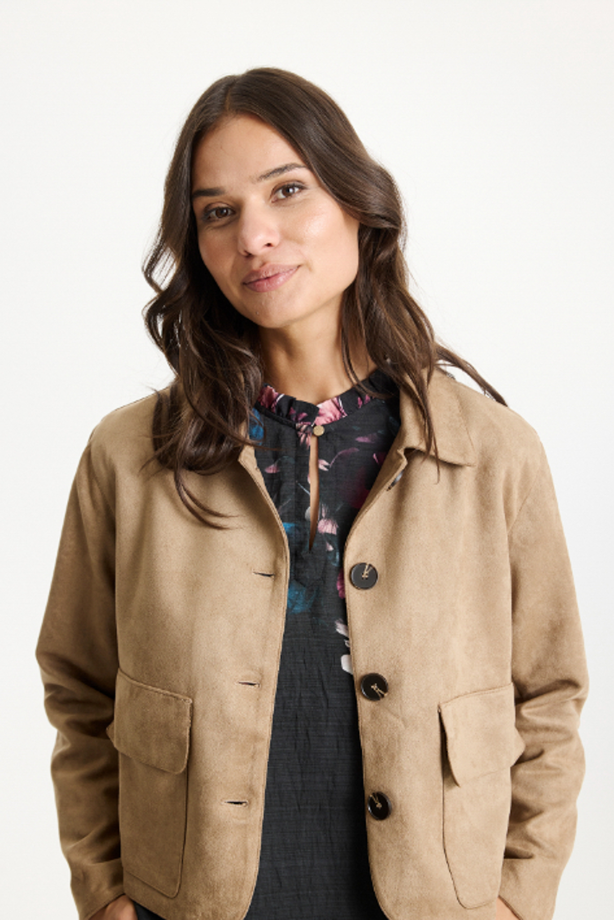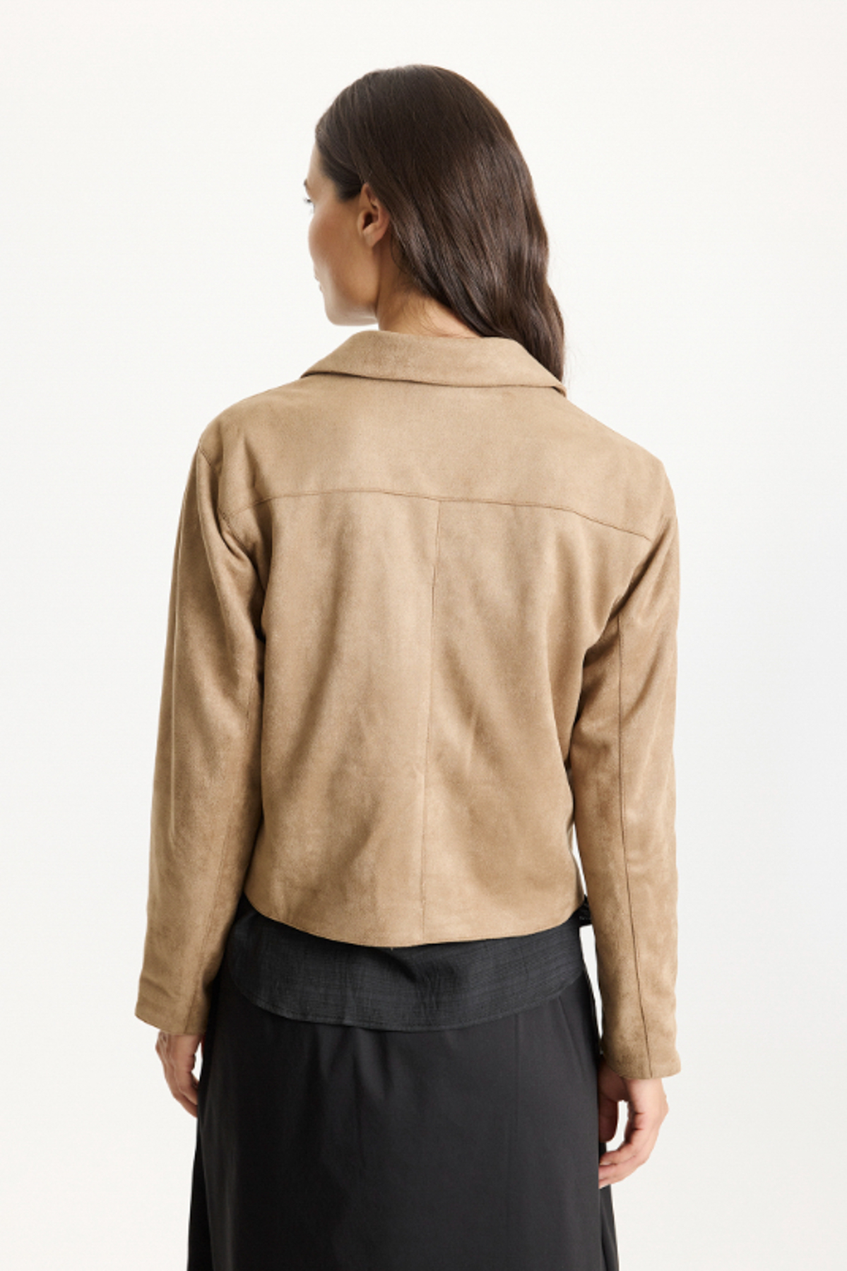 Jackan är tillverkad i mjukt material med en lyxig faux mocka-känsla, vilket ger den en varm, sofistikerad look med subtil textur. Den passar perfekt till höstens mustiga cowboy-vibes och kombineras snyggt med säsongens kjolar, som exempelvis Gudrun Kjolen (klicka här), för en modern och feminin styling.
