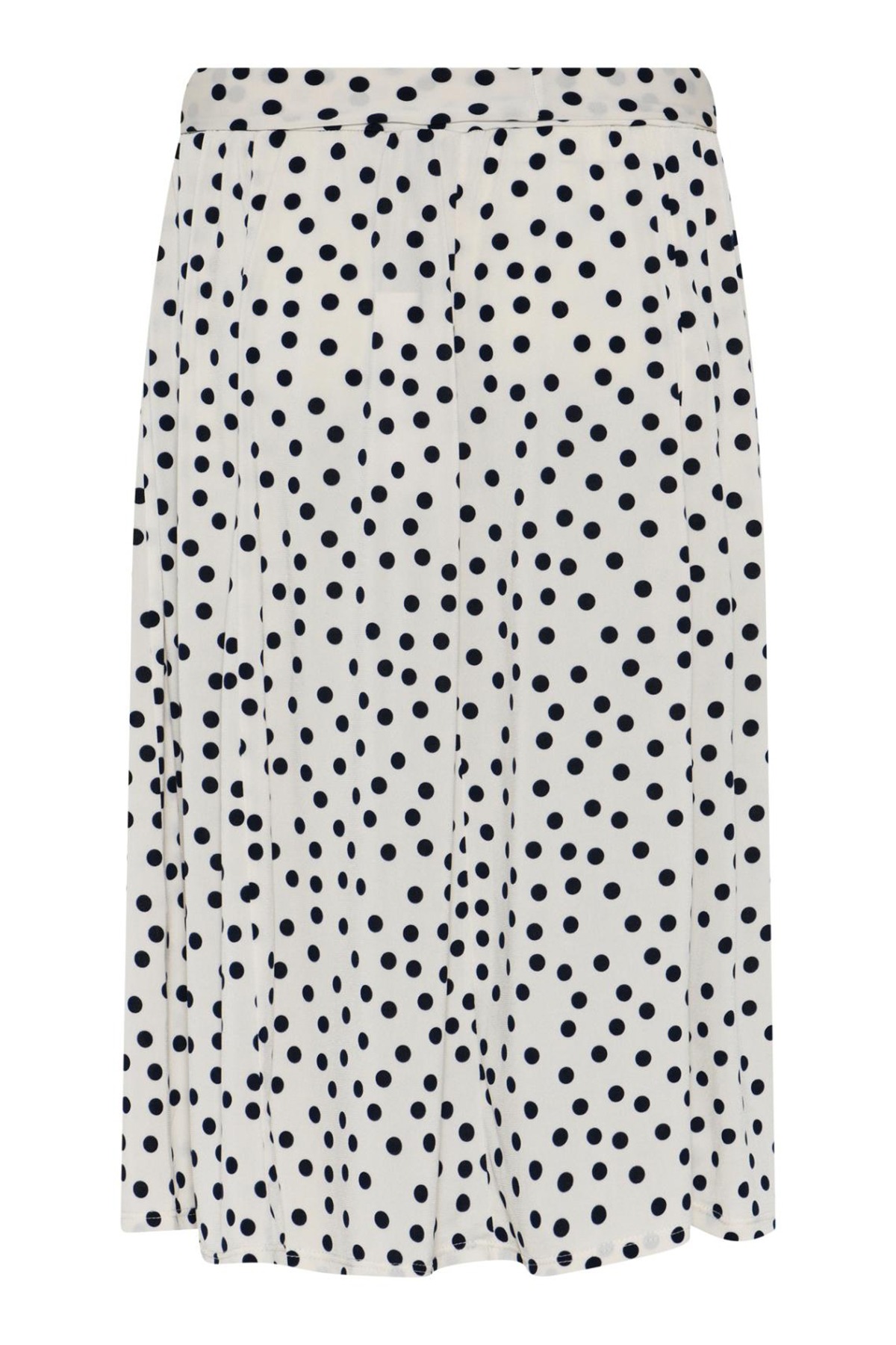 Ge din stil en klassisk och lekfull touch med InFront LaLaLa Kjol Clara. Kjolen pryds av ett tidlöst prickigt mönster (polkadots) i mörkblått mot en krispig offwhite-bas, vilket skapar en sofistikerad kontrast som aldrig går ur tiden.