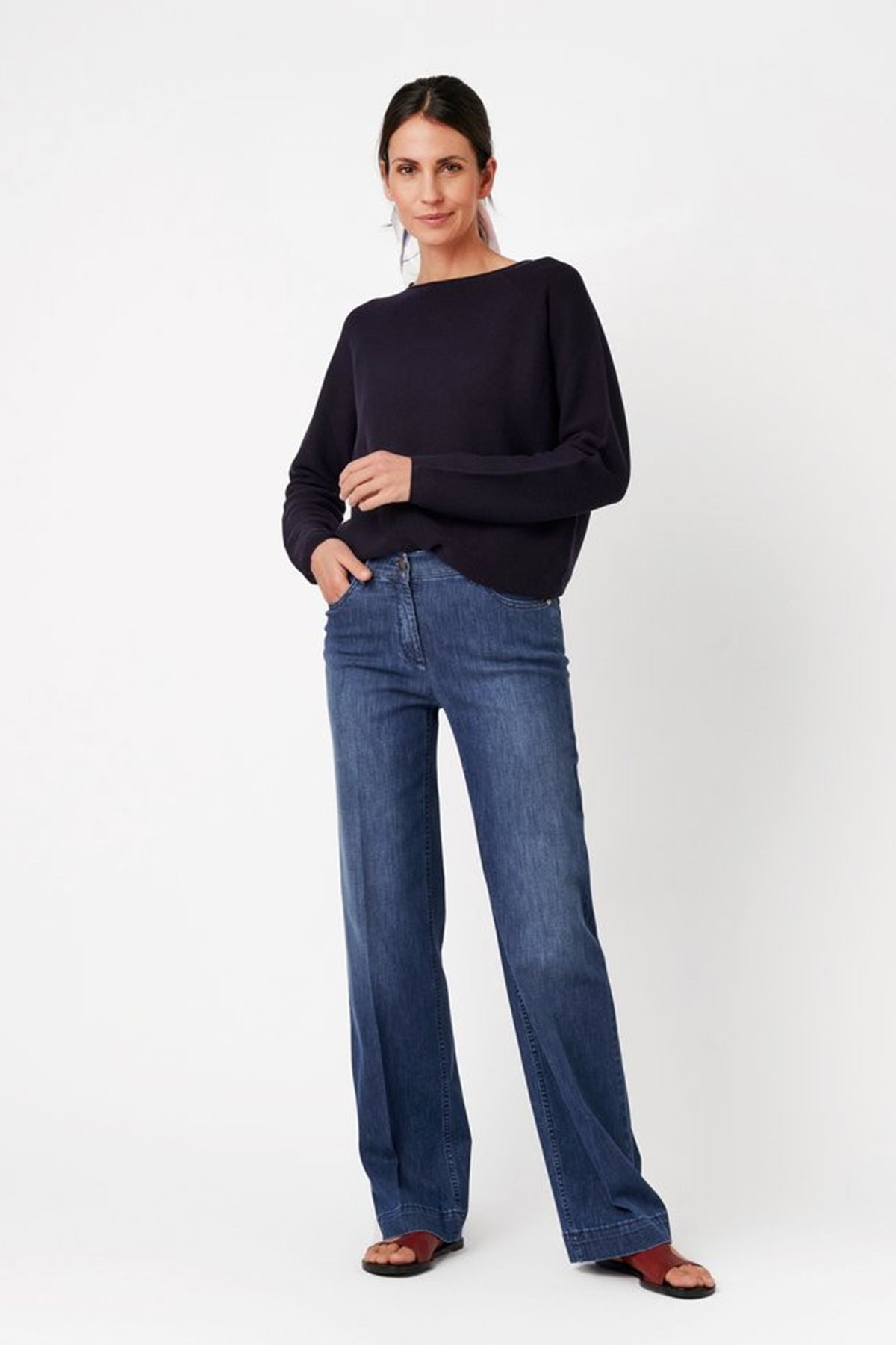 Upplev den perfekta kombinationen av trendig design och oslagbar bekvämlighet med TONI Jeans Jenny Wide. Dessa jeans i en tidlös “Mid Blue” tvätt erbjuder en modern silhuett med vida ben som ger ett luftigt och elegant intryck. Den lätta denimkvaliteten är berikad med lyocell, vilket ger tyget en exceptionell mjukhet och ett vackert fall.