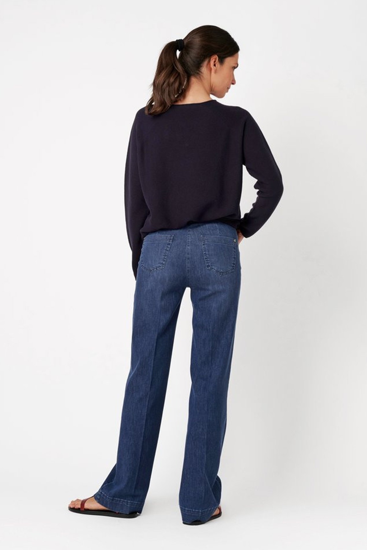 Det som utmärker modellen Jenny Wide är den smarta, sportiga linningen. Med en diskret resårinfällning i midjan baktill anpassar sig byxan efter dina rörelser och ger en flexibel passform utan att kompromissa med den stilrena looken framtill. Detta gör dem till det perfekta valet för långa dagar där både stil och rörlighet krävs.