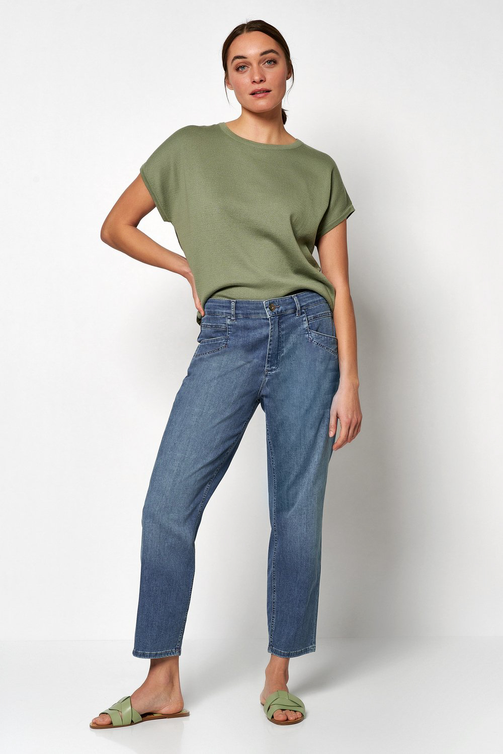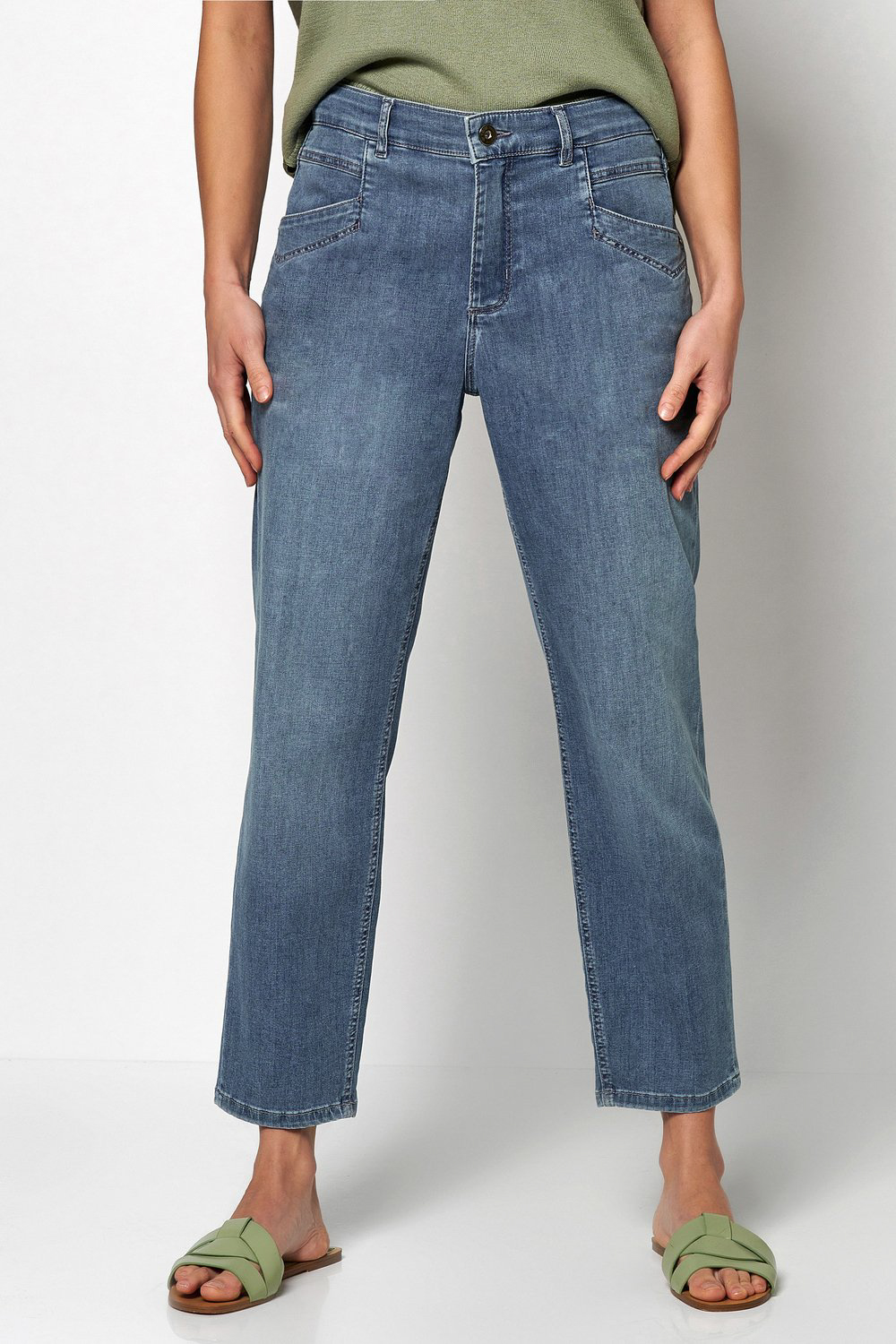 Liv i 7/8-längd från Toni har hög midja och ett rakt klassiskt ben med lite vidd. Liv tillverkas alltid i mycket mjuka och följsamma tyger och har bekvämt hög midja som följer skönt in i svanken.