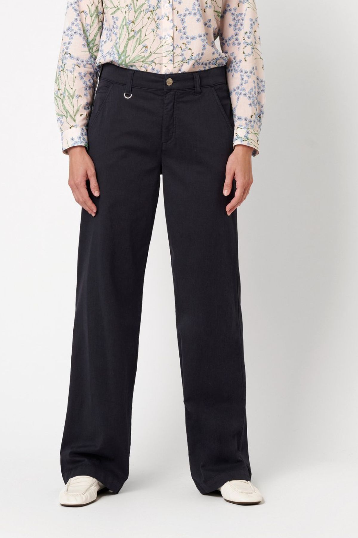 Möt din nya favorit för en välklädd men avslappnad look. Liv Wide Cotton kombinerar en sofistikerad mörk marinblå nyans med den mjuka, naturliga känslan av högkvalitativ bomull. Den vida passformen ger en modern siluett som både ger en förlängande effekt och erbjuder optimal rörelsefrihet.