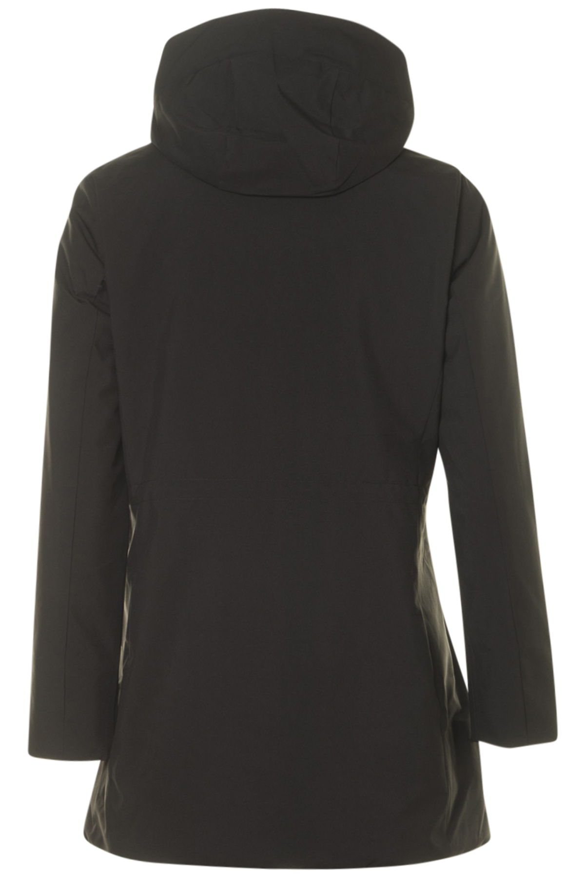 En tuff längre jacka från Luhta med kapuschong och dragkedjor i svart. Jackan är något figursydd i modellen och den är något Plus size, dvs har en något lösare passform med en justerbar midja. Den knäpps med en tvåvägs-dragkedja och tryckknappar fram och den har två vertikala fickor som stängs med dragkedja, samt en innerficka med dragkedja. Jackan är tillverkad av ett vattenavvisande material utan PFC, med vattenpelare på 10 0000 mm. Denna produkt innehåller återvunnet material, REPREVE® OceanT-återvunna polyesterfibrer, gjorda av plastflaskor från efterkonsumtion som har hämtats nära kustområden och vattendrag där de löper stor risk att hamna i havet. jackan funkar för både aktiv och vardaglig användning. Tygytan har behandlats med en vattenavvisande finish och det vindtäta materialet ger optimalt vindskydd och värme.