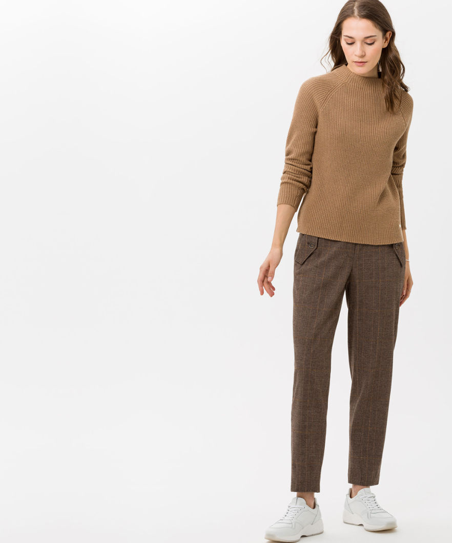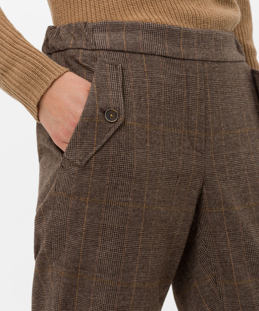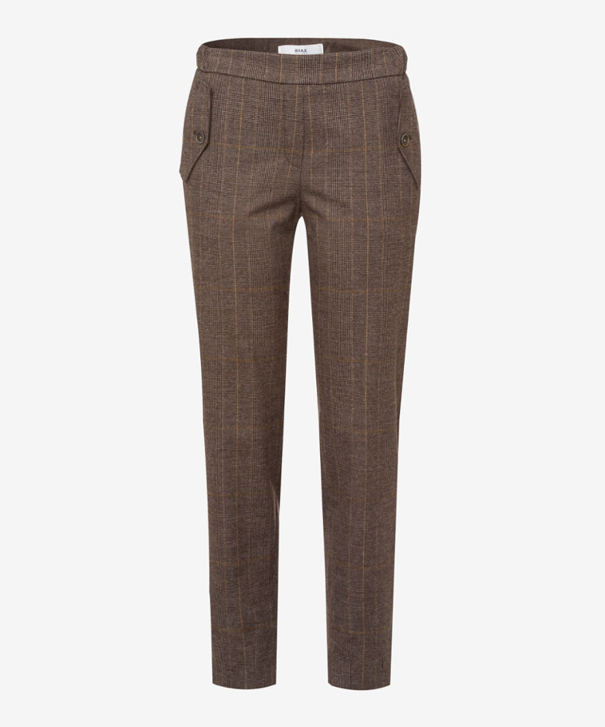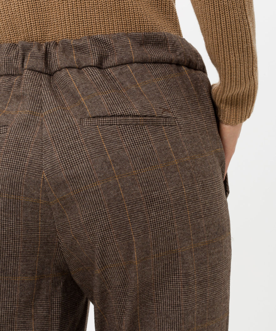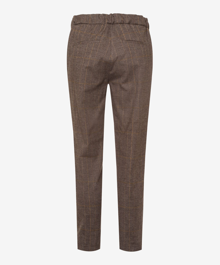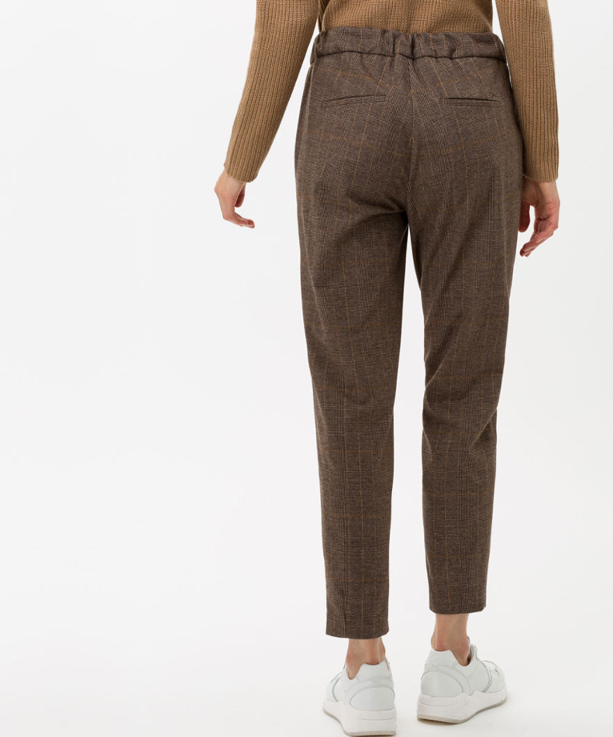 Mareen S Glencheck från Brax Feelgood är ett pull-up byxor i en mjuk, mönstrad tyg.