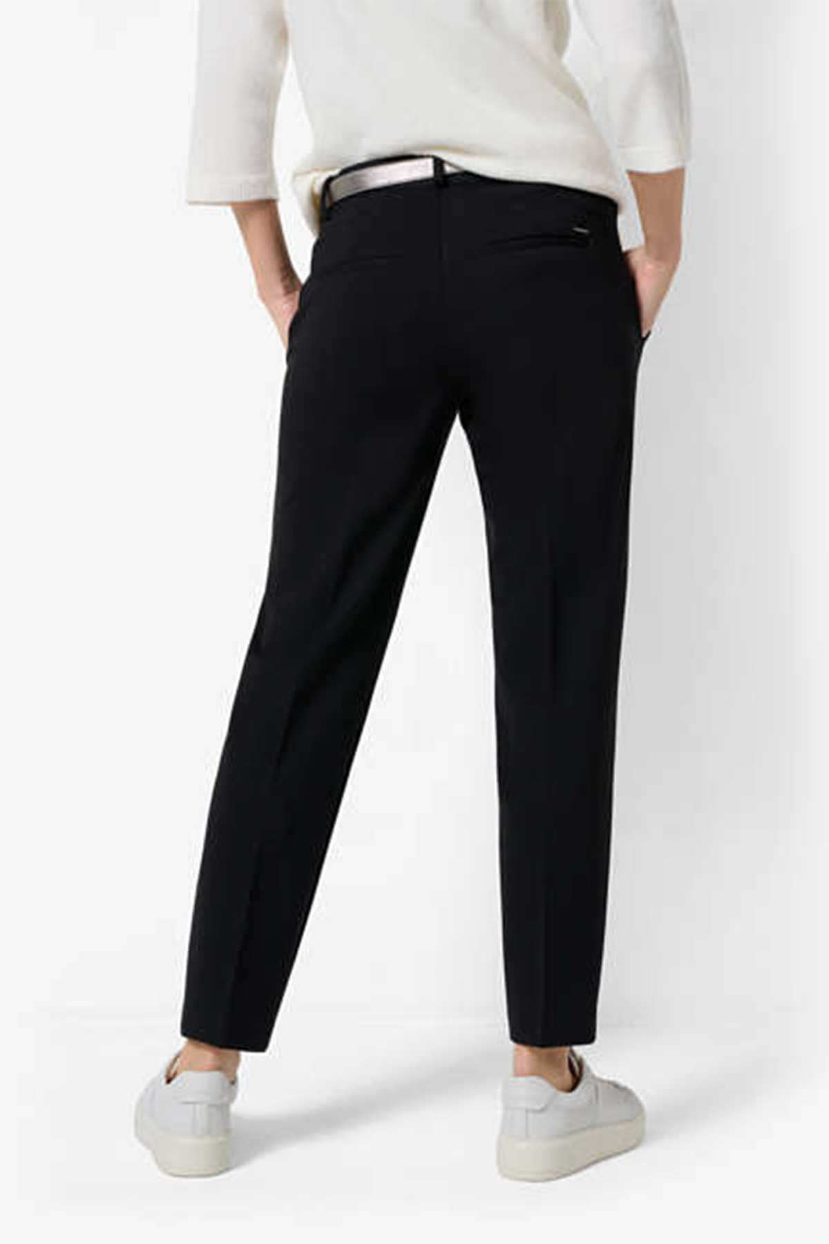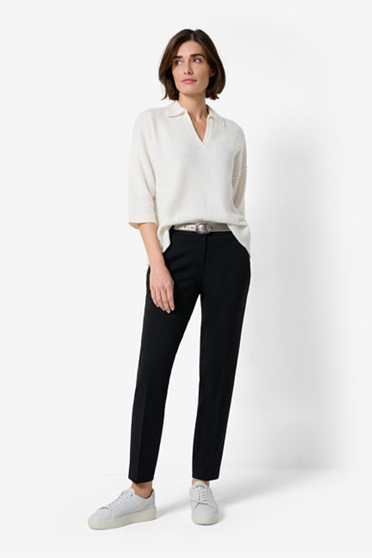 Brax Maron S Jersey Black är en stilren chinobyxa som erbjuder det bästa av två världar: klassisk elegans möter mjuk, modern komfort. Denna ankellånga byxa i svart skapar en snygg, smal siluett utan att kännas tight.
