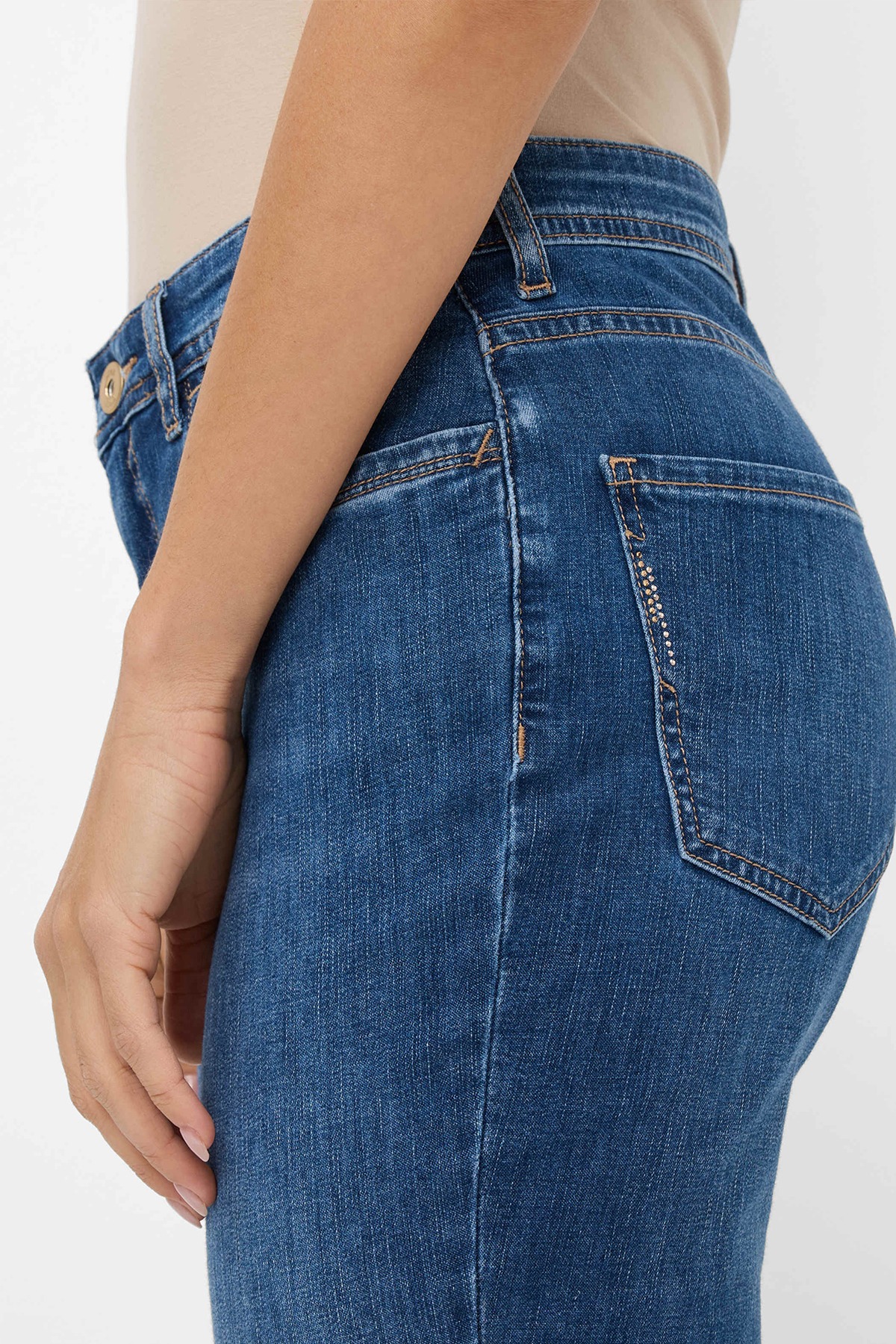 Modellen Mary S har en tidlös Regular Fit med raka ben och en normal midjehöjd som sitter bekvämt och smickrande. Den eleganta 7/8-längden ger en luftig silhuett som passar perfekt till både sneakers och sandaler. Den klassiska femficksdesignen ger byxan en autentisk jeanslook, samtidigt som den högkvalitativa bomullsblandningen med stretch garanterar maximal rörelsefrihet och enastående formbeständighet.