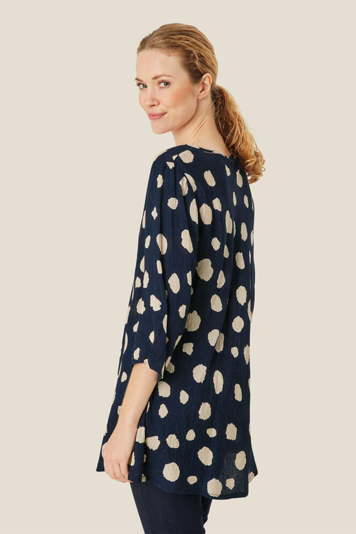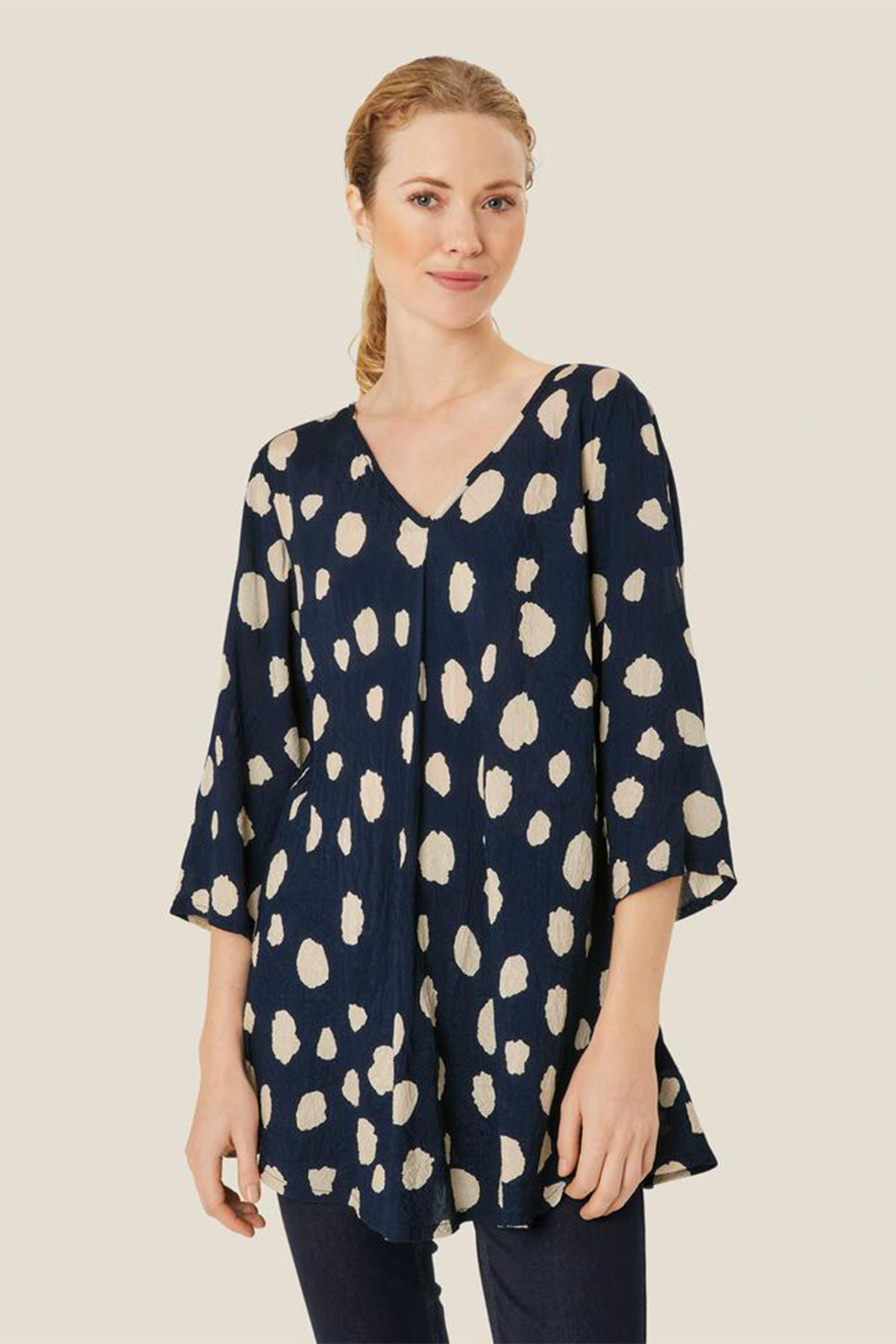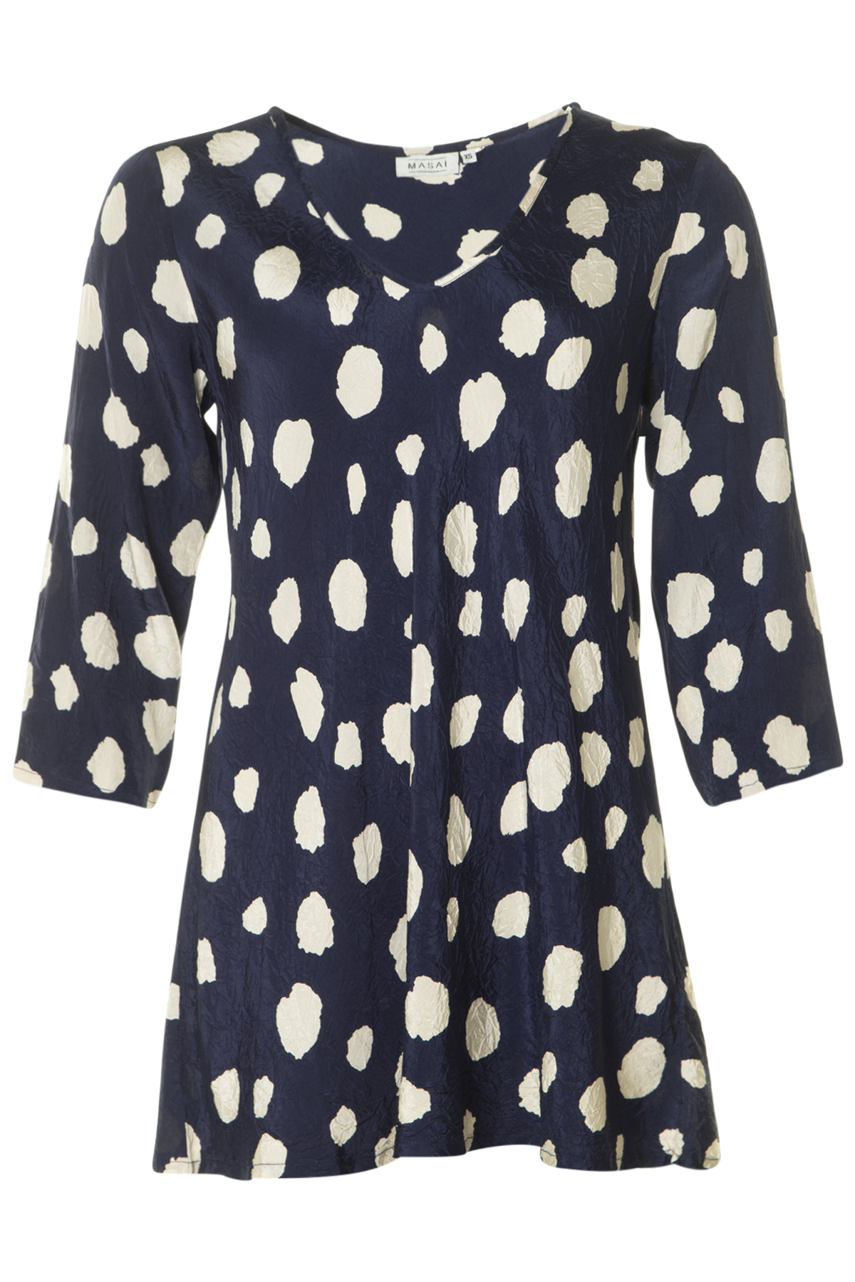 En fin tunika med V-ringad hals och 3/4-dels ärm från Masai. Tunikan är elegant och mjuk i materialet och passar perfekt både till både vardags och fest.