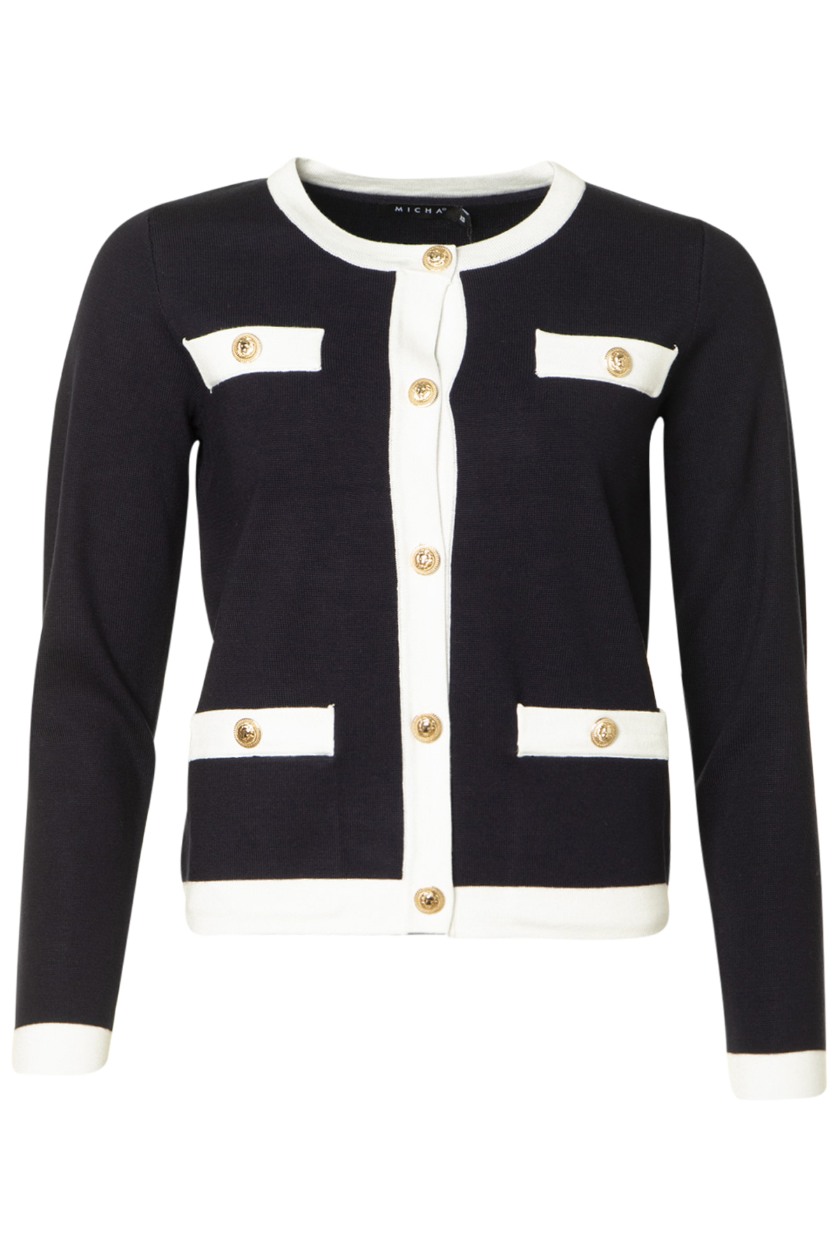 Micha Cardigan Daejeon, är en elegant cardigan i Chanell-stil. Koftan är rak i modellen och normal i passformen och har vita kanter runt om.