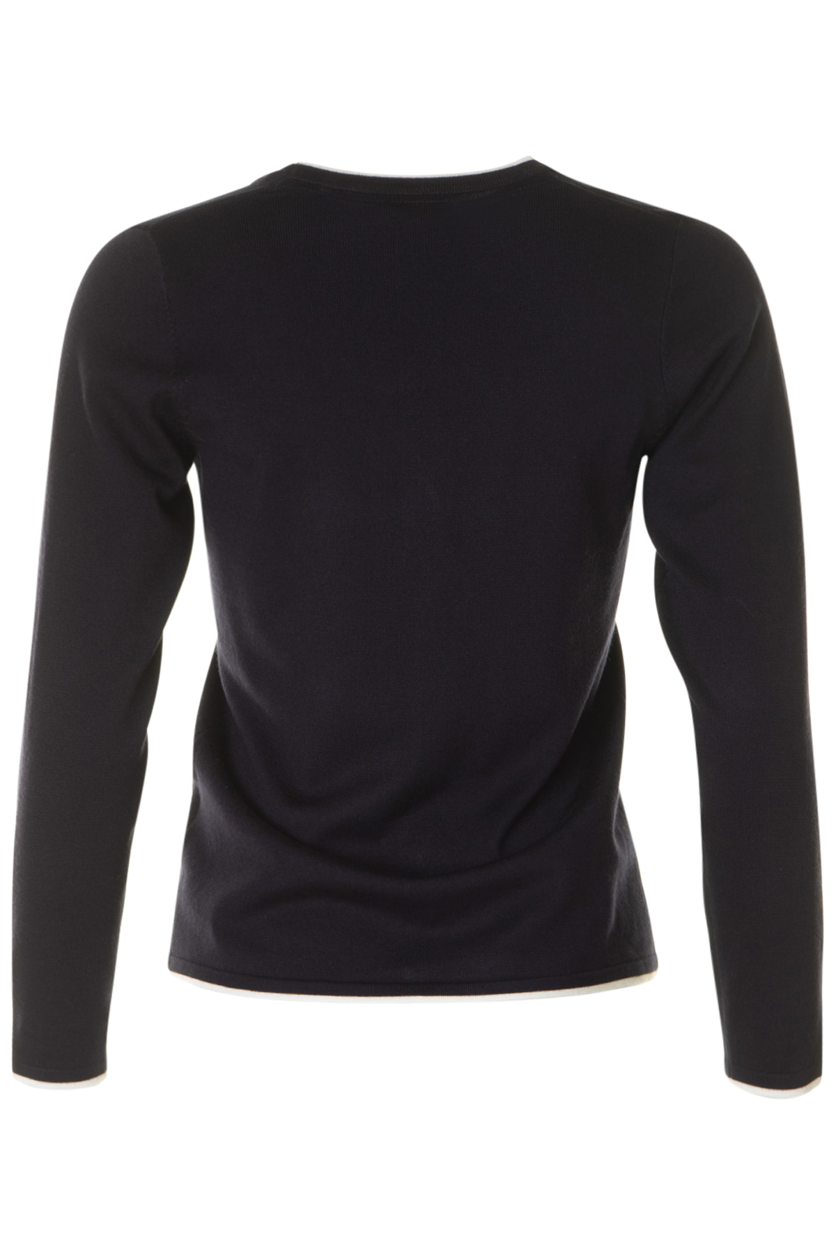 En supermjuk långärmad kofta från Micha med en vit rand i alla avslut. Koftan knäpps fram med sex runda knappar och är rak i modellen och har normal passform och är tillverkad av en sval viskosmix.