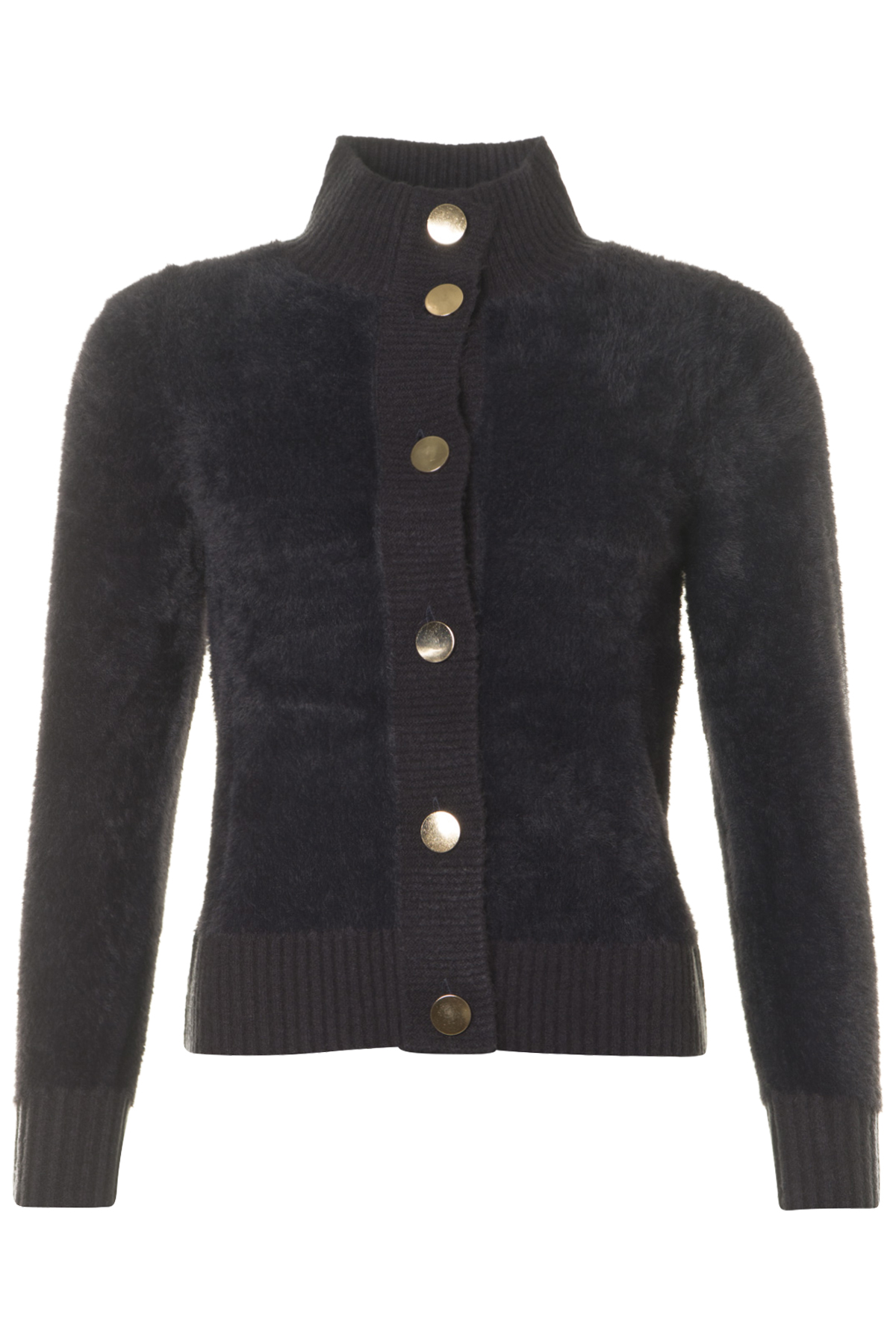 En supermjuk fluffig långärmad kofta från Micha med stora guldfärgade knappar. Koftan är rak i modellen och har normal passform och är tillverkad av en varm mix-kvalitet.