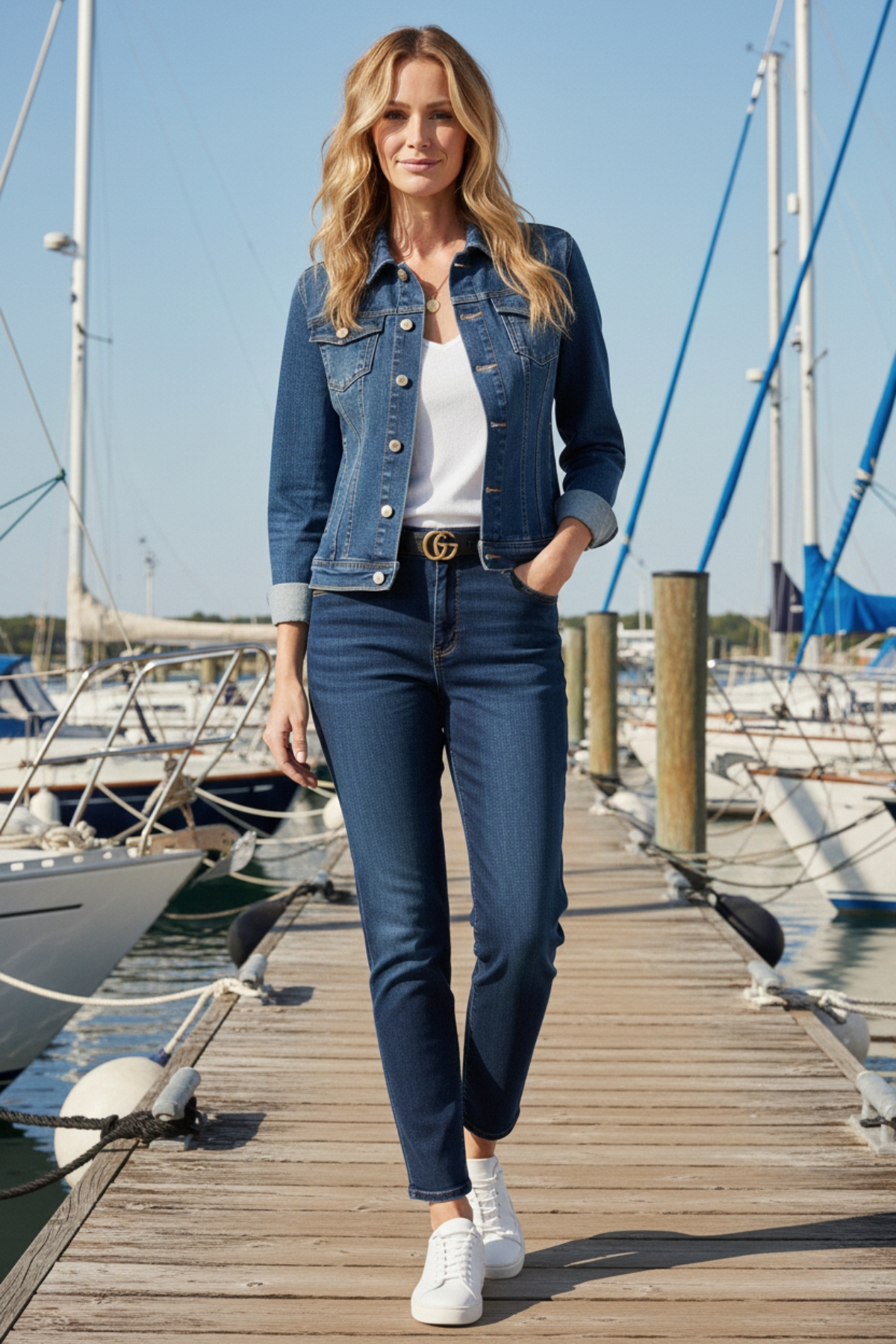 Denna stretchiga jeansjacka Montecito är perfekt för lager-på-lager-styling. Bär den över en t-shirt eller blus, eller kombinera den med en lättare tröja. Micha Jeansjacka ger en stilfull, mångsidig look och är ett självklart val för både vardagsbruk och en avslappnad weekendlook.