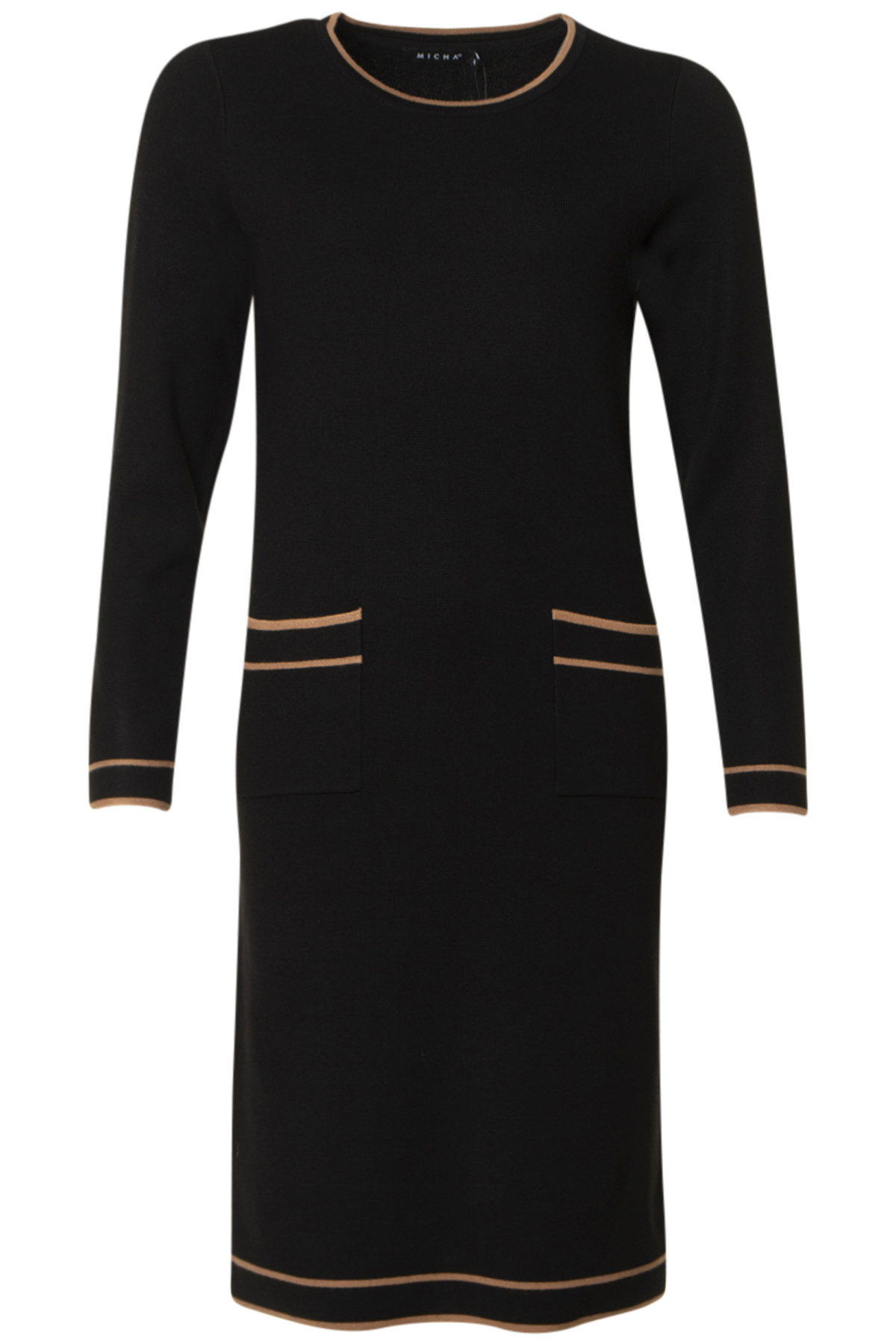 Micha Klänning Pingyao a är en elegant och stilfull finstickad klänning som kombinerar komfort med modern design. Klänningen har rund hals och långa ärmar, med en figurnära men normal passform som framhäver silhuetten på ett smakfullt sätt. Den har två utanpåfickor fram och fina kontrasterande ränder i camel-färg, i alla avslut på klänningen. Tillverkad i en varm och skön viskosblandning känns den behaglig mot huden, samtidigt som den håller dig snyggt klädd under höstens och vinterns svalare dagar. Micha Klänning Pingyao är ofodrad och lätt att bära, vilket gör den till en mångsidig favorit i garderoben.