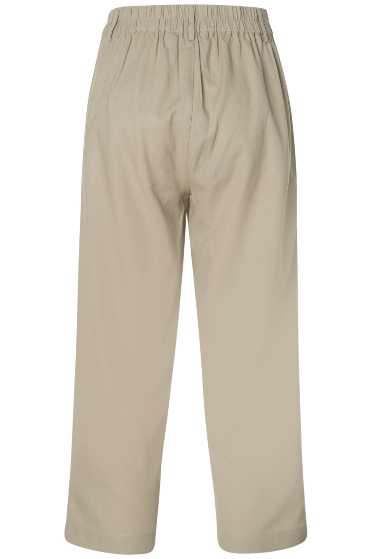 Micha LinneByxor Calimete, är eleganta linne-byxor med klassiskt raka ben och en kortare benlängd. Byxan har en linning med hällor och knapp och gylf fram, samt elastisk linning bak. De har två snedställda framfickor och är tillverkade i sval linne.