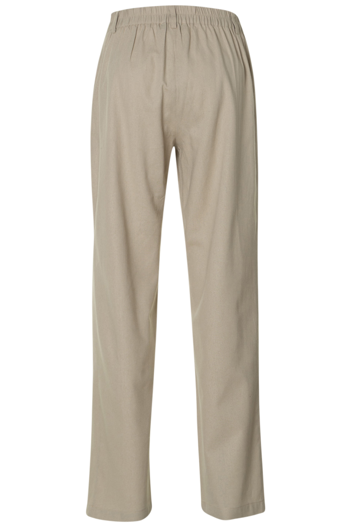 Eleganta linne-byxor från Micha med klassiskt raka ben. Byxan har en linning med hällor och knapp och gylf fram, samt elastisk linning bak. De har två snedställda framfickor och är tillverkade i sval linne.