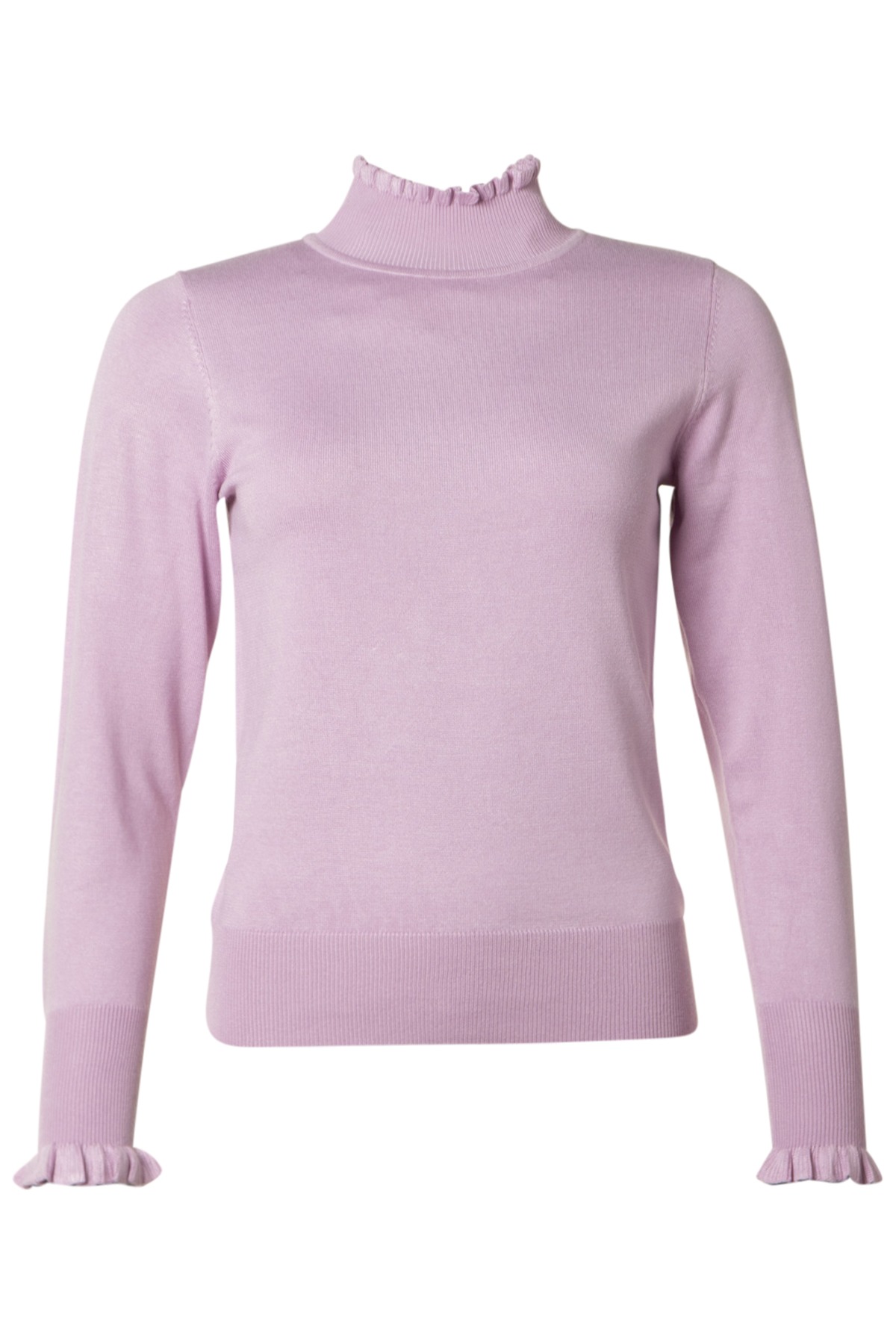 Micha Polotröja Koblenz. Långärmad tröja med liten volang på en halvpolokrage från Micha. Tröjan är rak i modellen, normal i passformen och är slätstickad.
