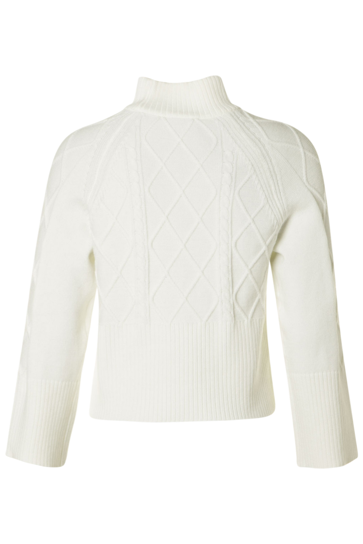 Micha Polotröja Luoyang är en snygg mjuk långärmad tröja med halv polo-krage från Micha. Tröjan är rak i modellen, normal i passformen och är snyggt mönsterstickad med stora rutor, flätor och med ribbstickade muddar.