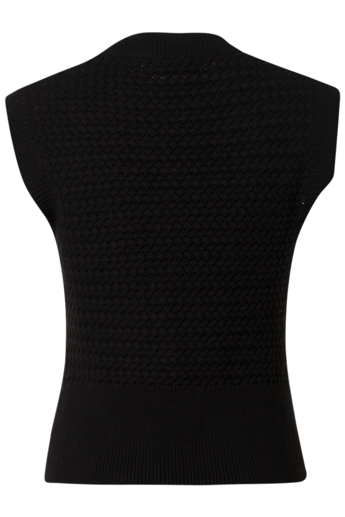 Micha Slipover Sendai. En snygg mjuk slipover med rund halsringning från Micha. Slipovern är rak i modellen, normal i passformen och är snyggt mönsterstickad med breda ribbstickade muddar med sprund i sidsömmar.