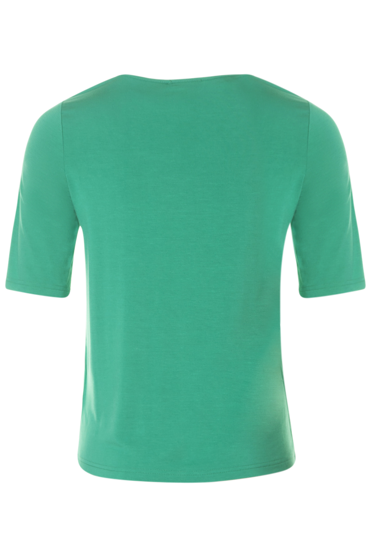 En härlig kortärmad viskos-topp från Micha med fin rund halsringning med dekorativa små strasstenar. Toppen är rak i modellen och normal i passformen.