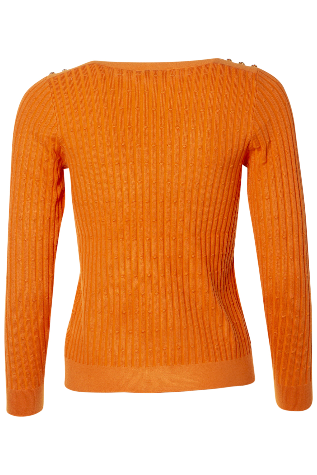 Micha Tröja Chungju är en fin långärmad tröja från Micha med rund halsringning och tre små guldknappar på axlarna. Tröjan är rak i skärningen och figurnära i passformen.