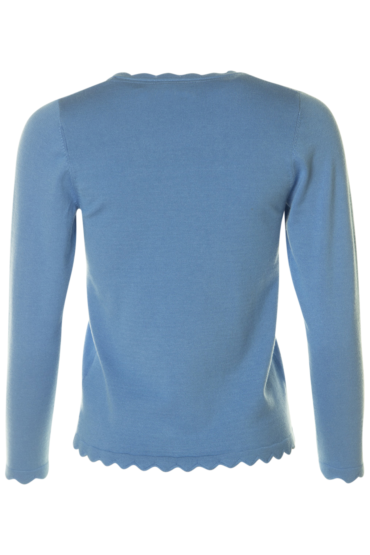 En mjuk finstickad långärmad tröja från Micha. Tröjan är rak i modellen och normal i passformen. Den har en fin vågformad kant i hals, ärmslut och nederkant.