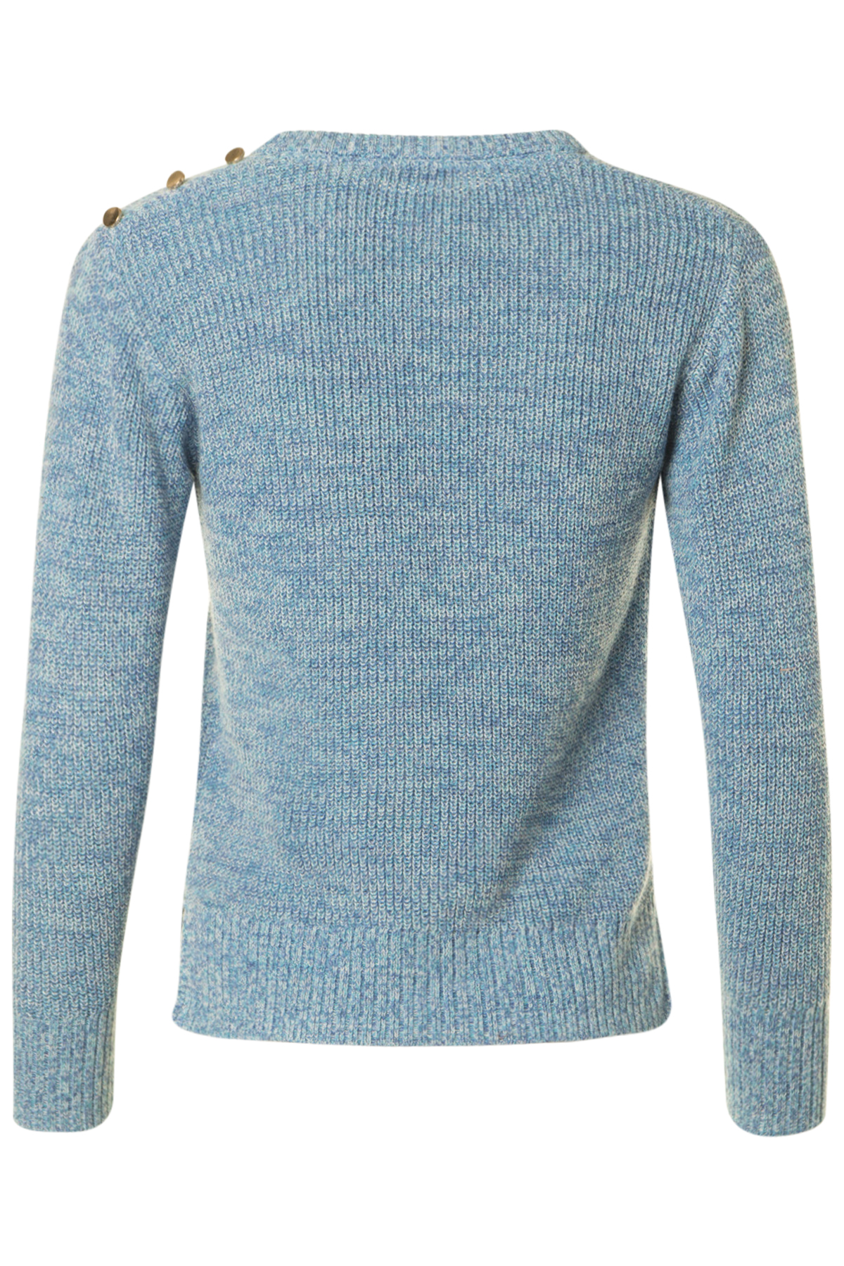 En fin långärmad tröja från Micha med rund halsringning. Tröjan är rak i modellen och normal i passformen med små sprund i sidsömmar och dekorativa guldfärgade knappar på vänster axel.