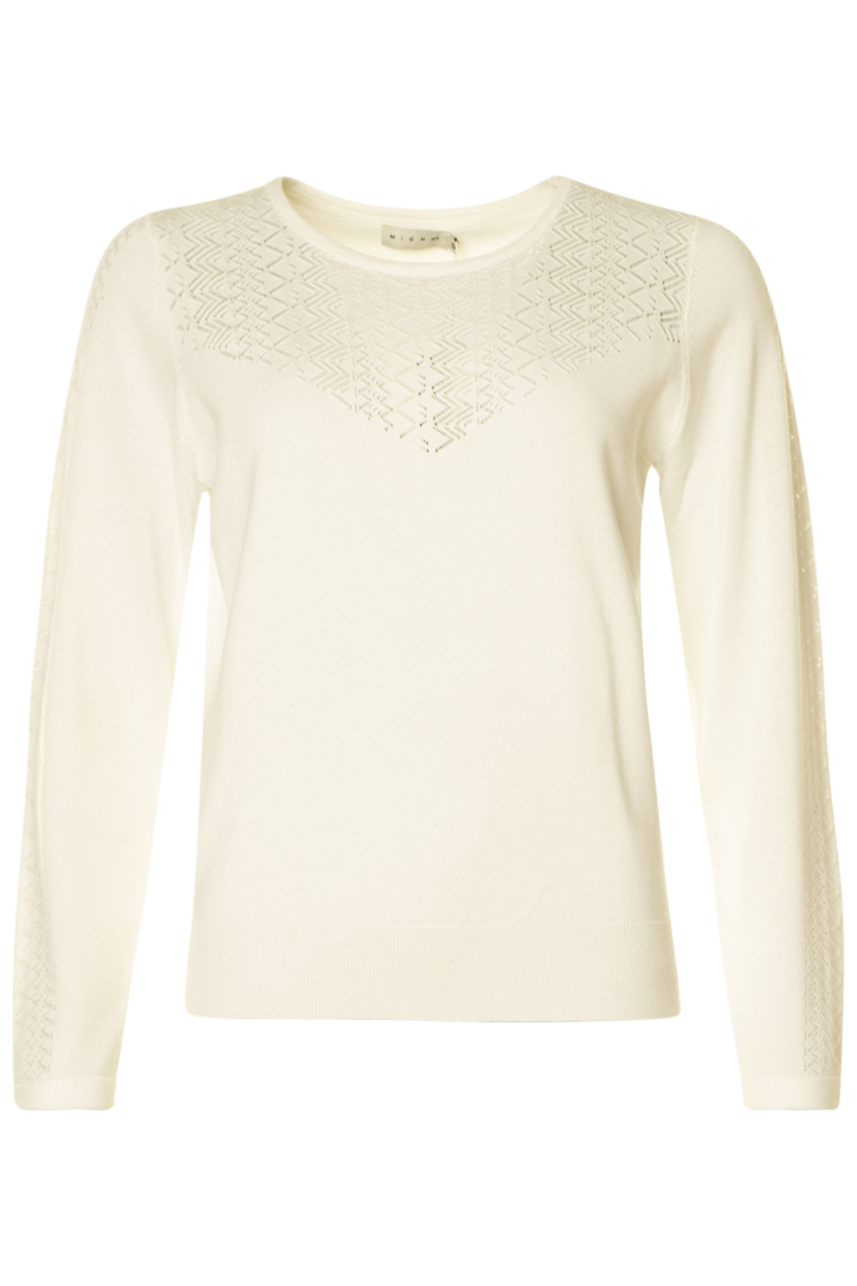 Långärmad tröja från Micha med rund halsringning. Tröjan har vackra strukturstickade detaljer i tyget.