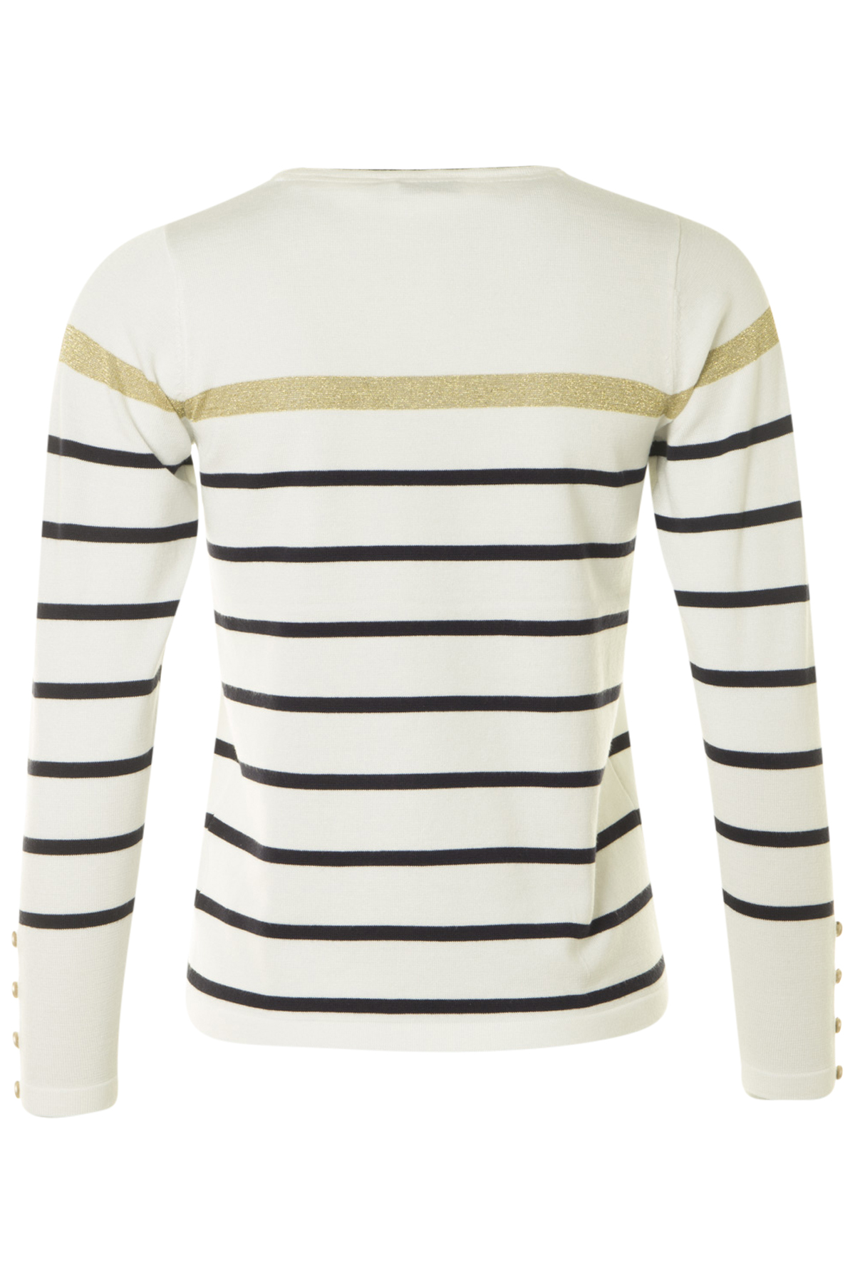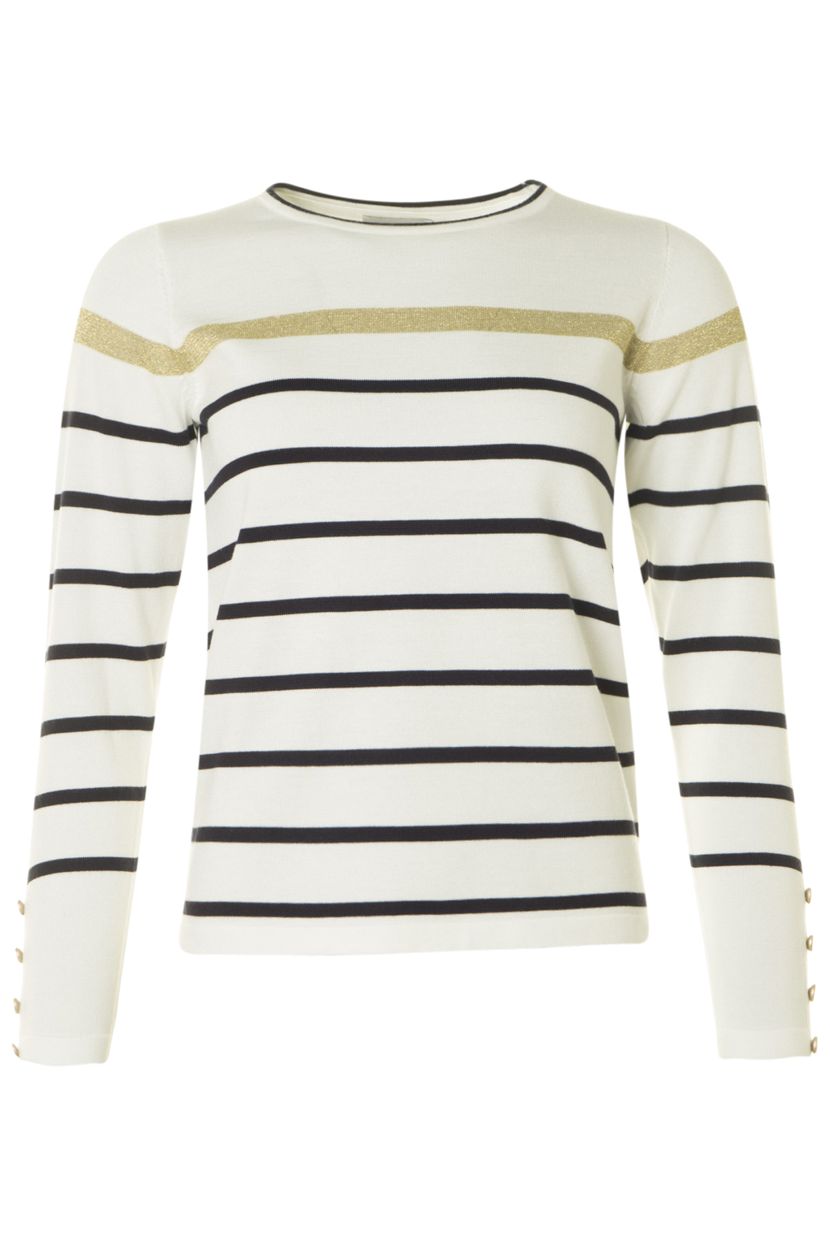 En fin långärmad randig tröja från Micha med rund halsringning. Tröjan är rak i modellen och normal i passformen och har en dekorativ guldglittrig rand överst på tröjan och guldfärgade knappar på ärmarna.