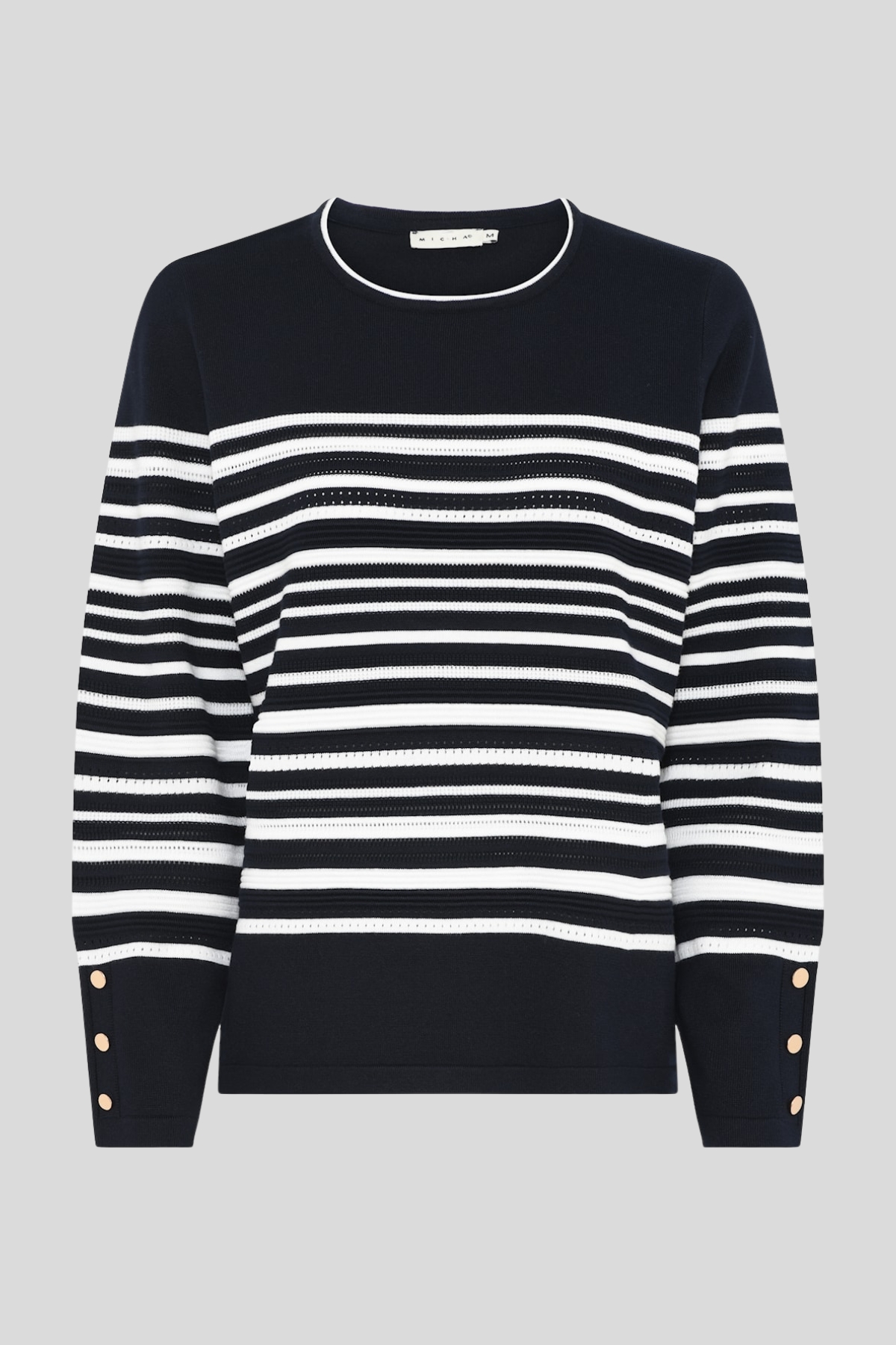 Micha Tröja Perpignan Navy. Denna tröja är en hyllning till den tidlösa marinstilen, med sina skarpa ränder i marinblått och vitt som ger en fräsch och sofistikerad känsla. Perfekt för alla säsonger och tillfällen!