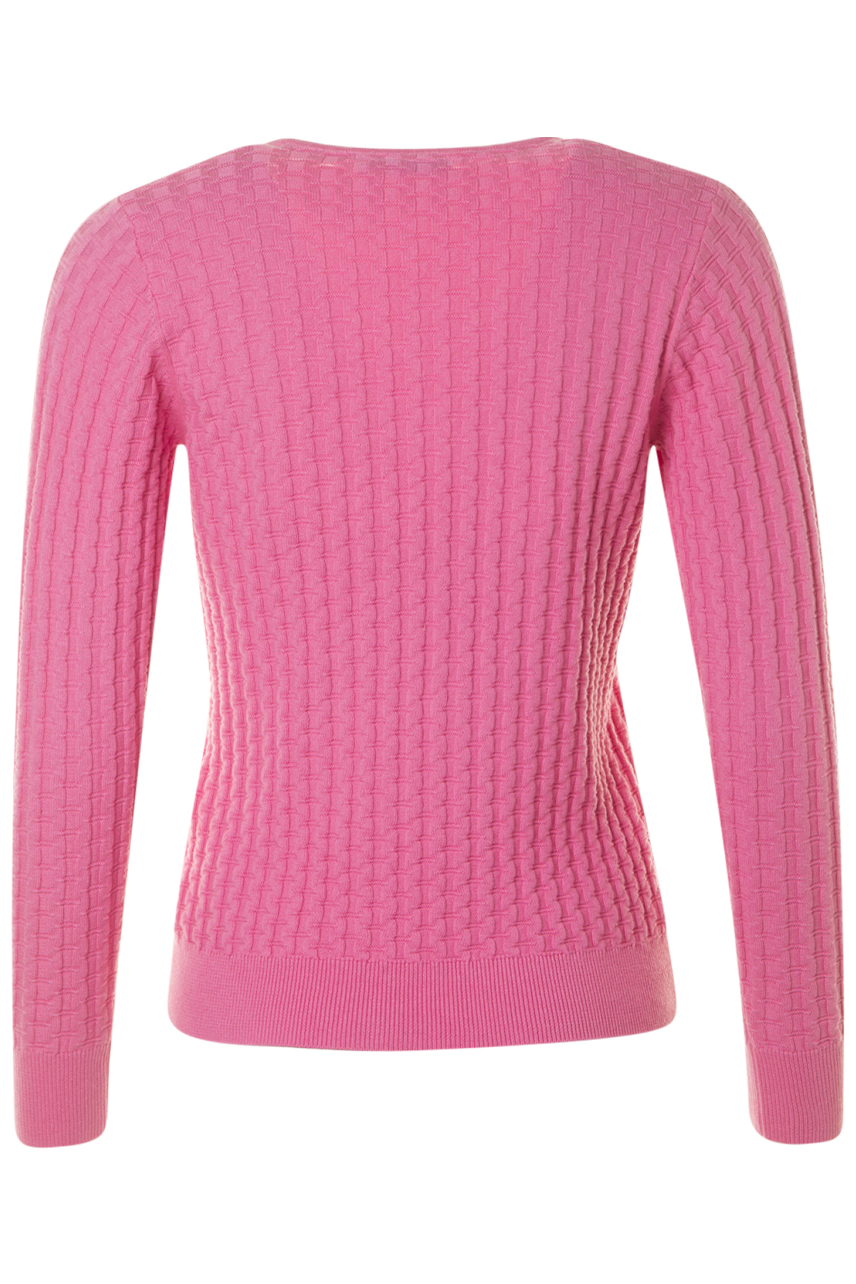 En mjuk V-ringad tröja från Micha med lång ärm. Tröjan är något figursydd i modellen och normal i passformen. Tröjan är fint mönsterstickad och är tillverkad av en sval och skön bomull.... Läs mer...