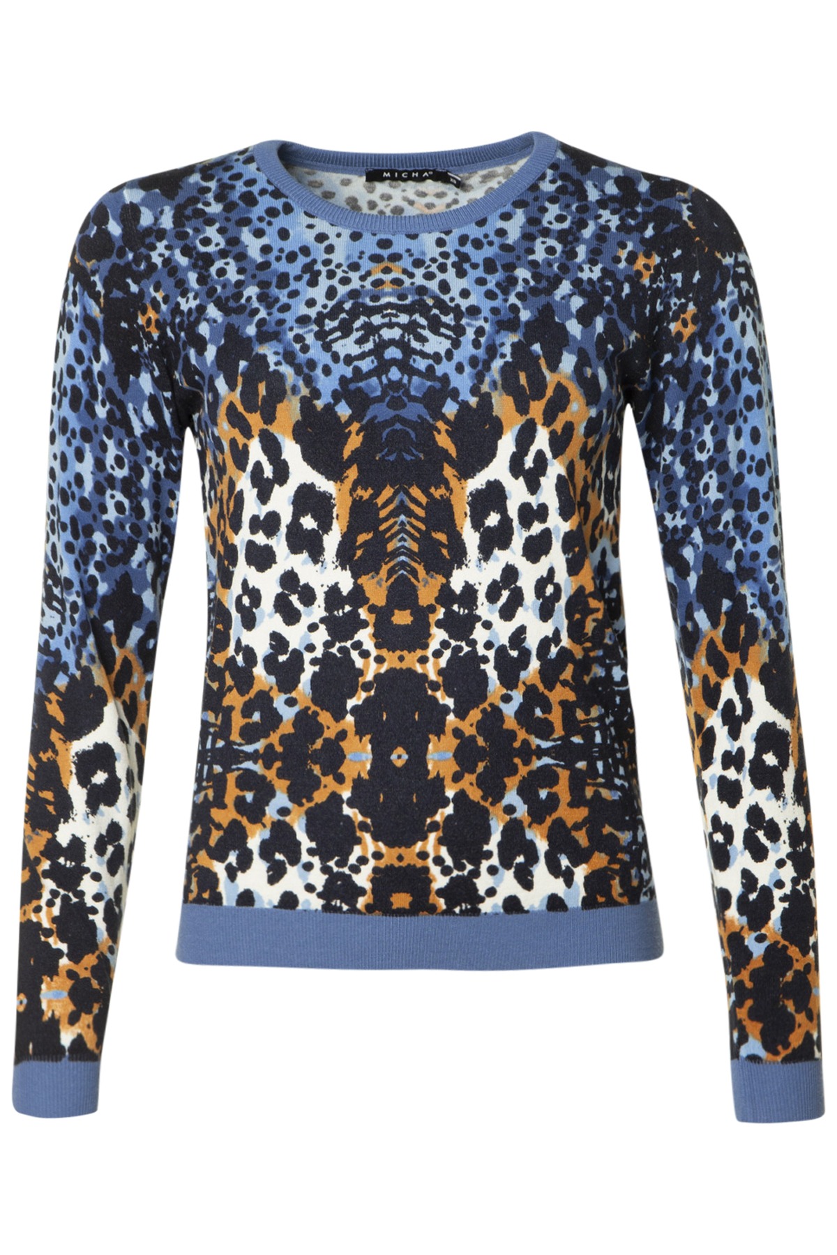Micha Tröja Wonju är en fin långärmad tröja från Micha med rund halsringning och smal mudd. Tröjan är normal i passformen med en mudd nertill. Den har ett fint tryckt animalprint och är tillverkad av... Läs mer...