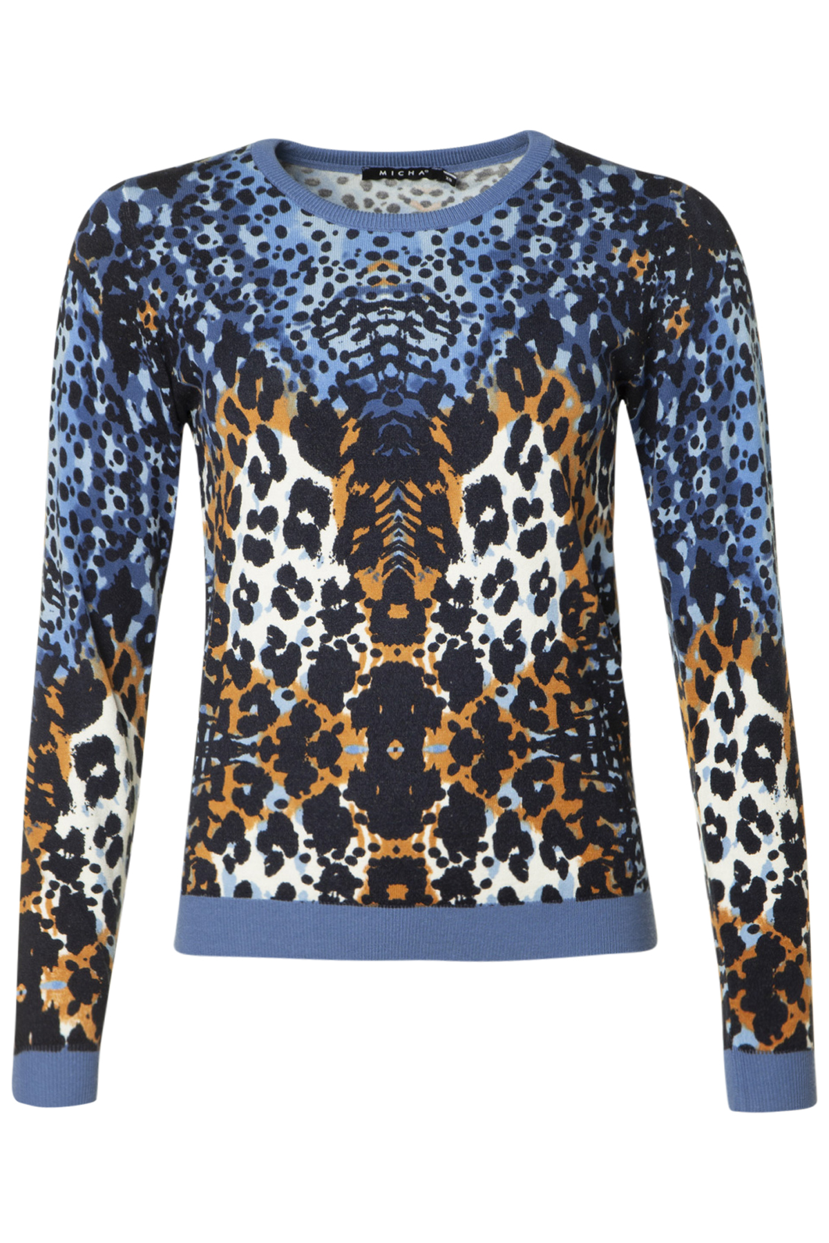 Micha Tröja Wonju är en fin långärmad tröja från Micha med rund halsringning och smal mudd. Tröjan är normal i passformen med en mudd nertill.