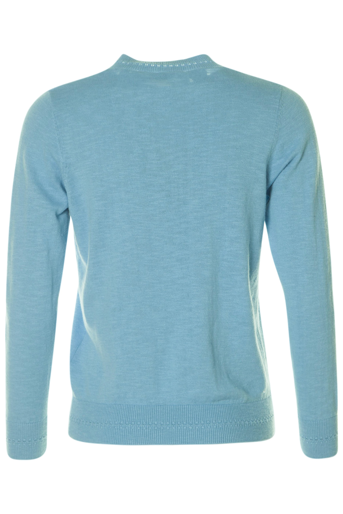 En mjuk finstickad V-ringad tröja från Micha med  lång ärm. Tröjan är rak i modellen och normal i passformen. Den har en fin detalj i form av ett hålmönster på mudd, runt hals, ärmslut och nederkant.
