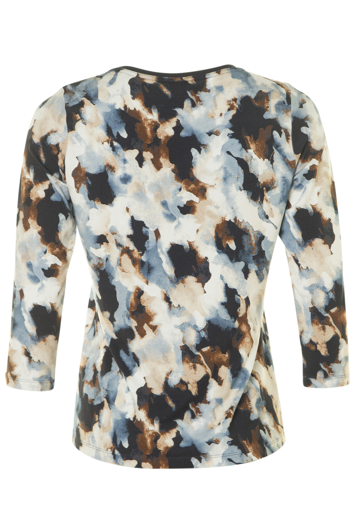 Rundhalsad topp från Rabe i fina höstfärger. Toppen har 3/4-ärm, är rak i modellen och något figurnära i passformen. Den är tillverkad av en sval och skön trikåkvalitet med mycket stretch som känns härlig mot kroppen.