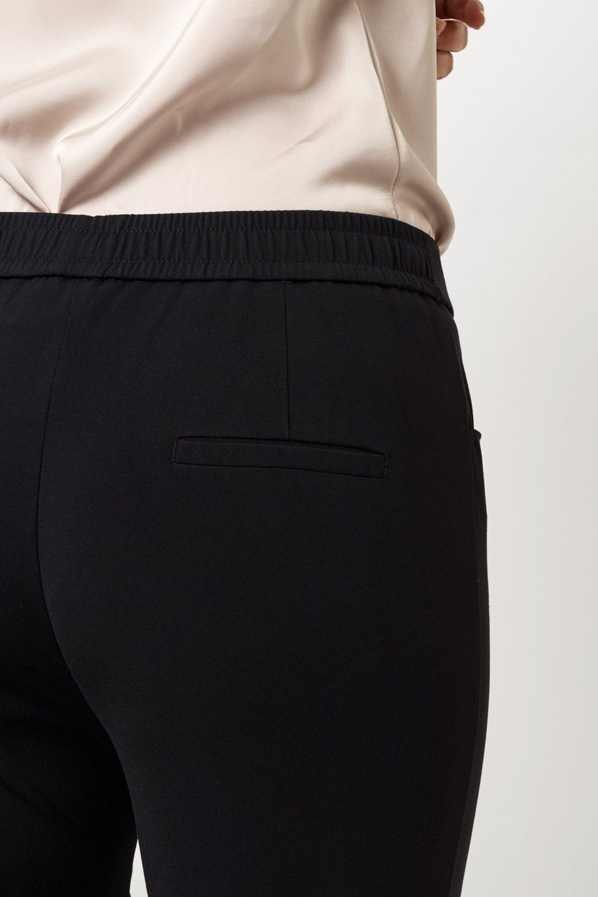Stängning: Bekväm elastisk linning baktill för optimal komfort.
