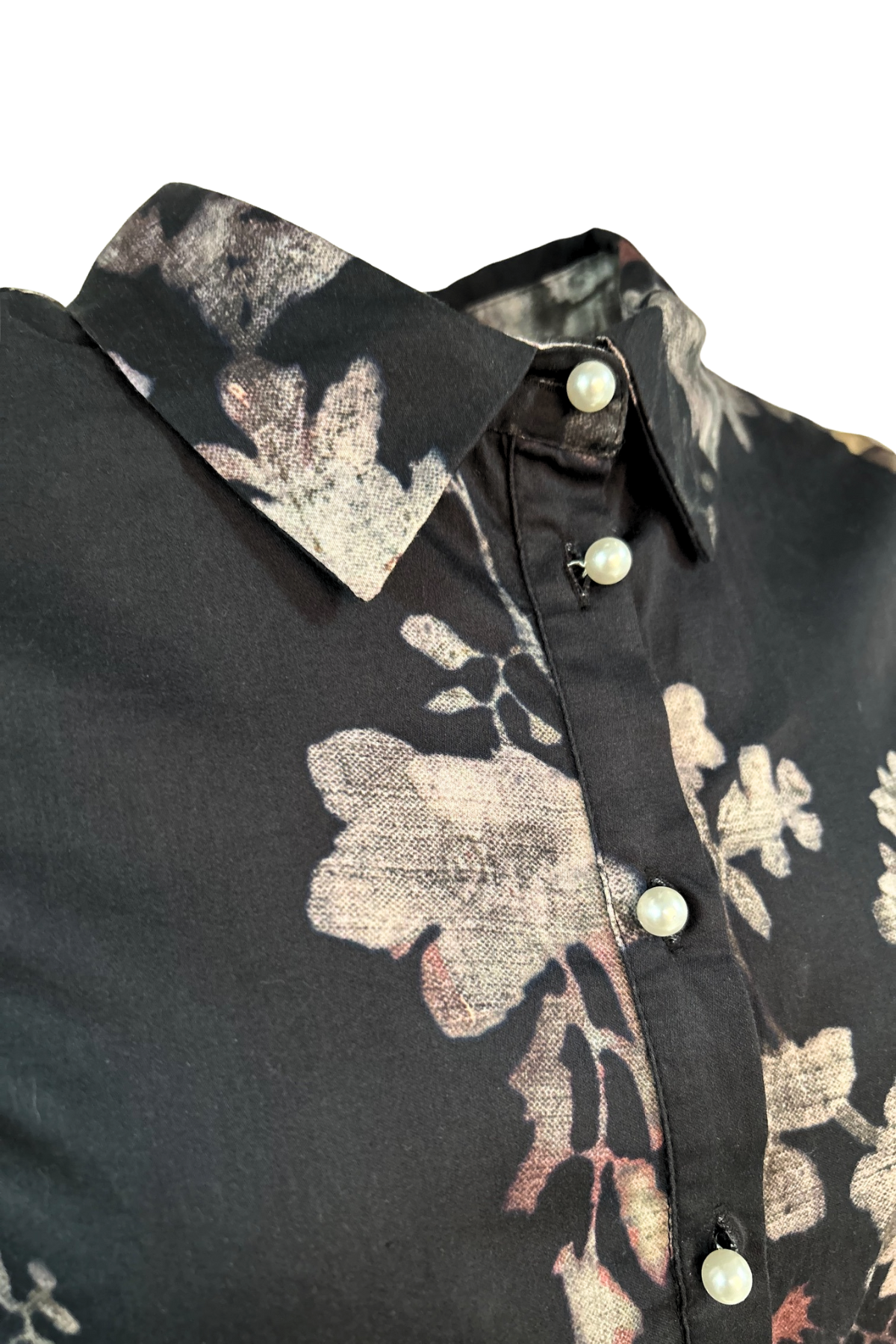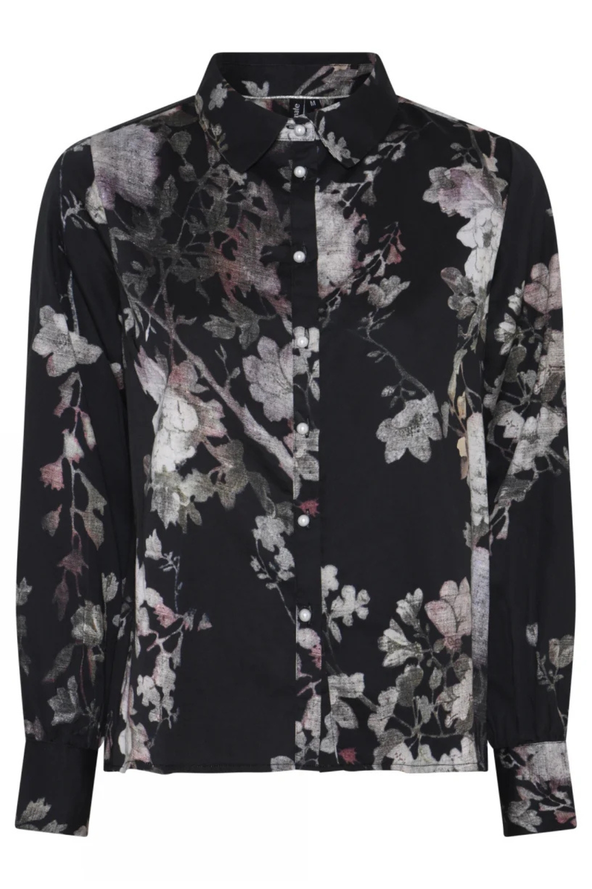 Soulmate Blus Boogie är en elegant svart blus med ett vackert mörkblommigt mönster – en perfekt balans mellan klassiskt och modernt. Blusen har en klassisk skjortkrage och sju pärlknappar framtill, samt matchande pärlknappar i manschetterna som ger ett lyxigt och sofistikerat uttryck.